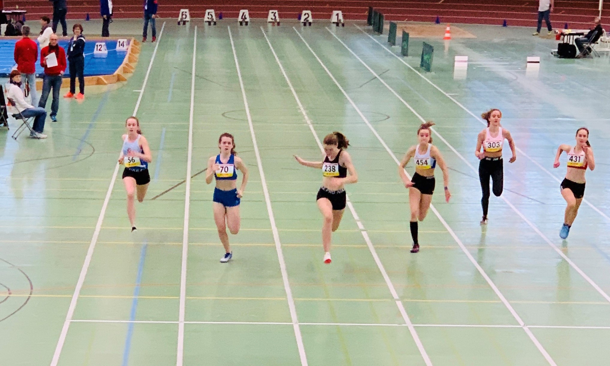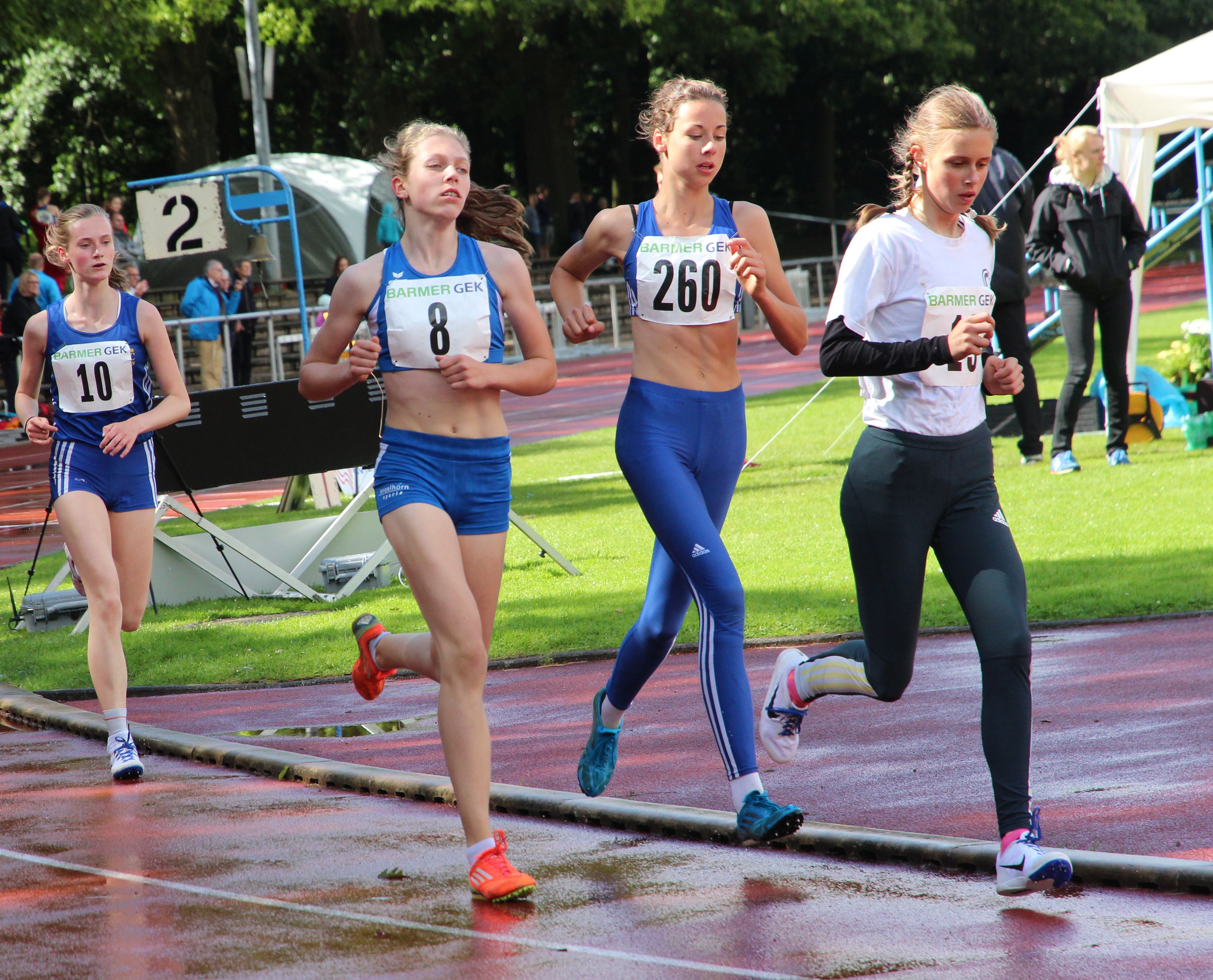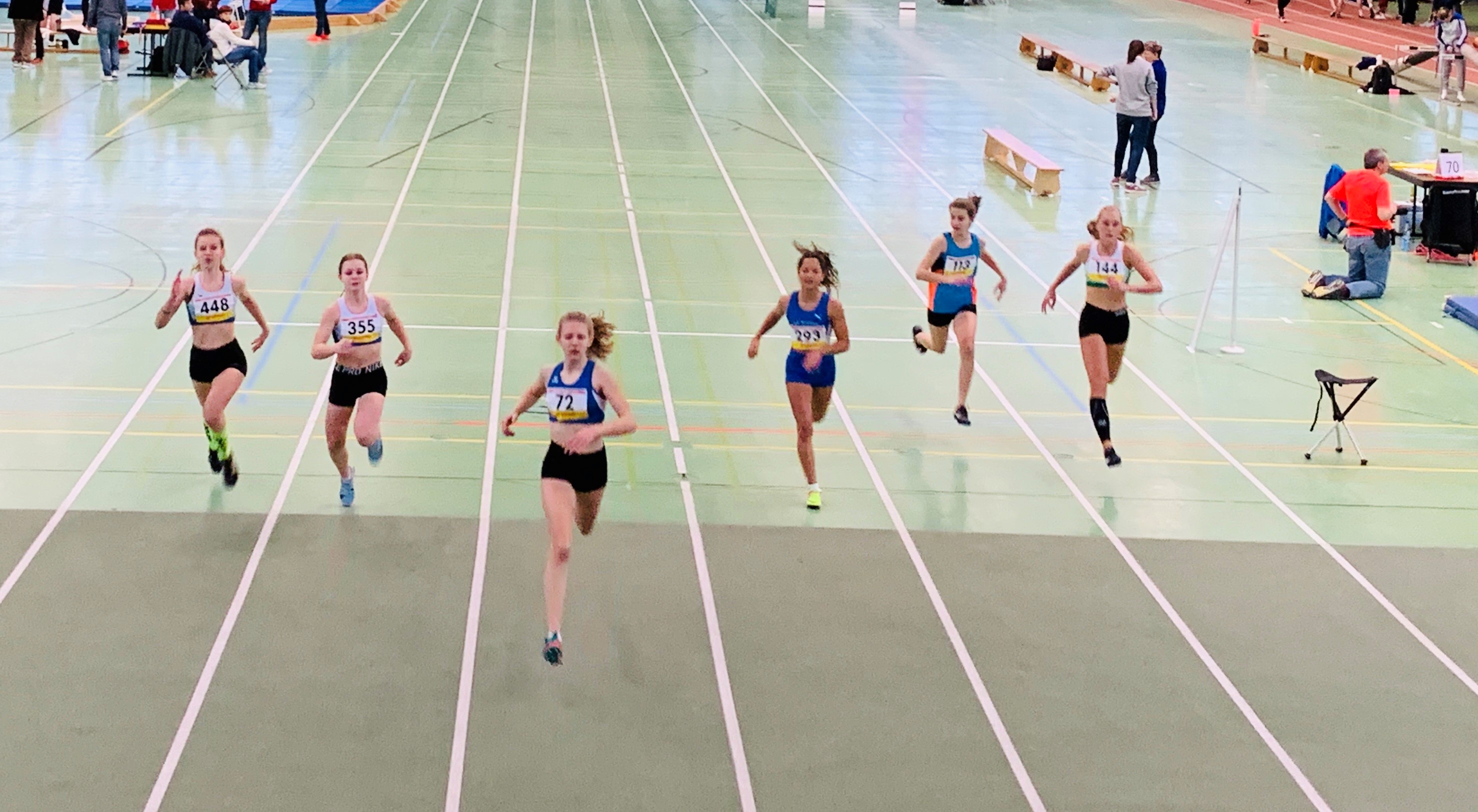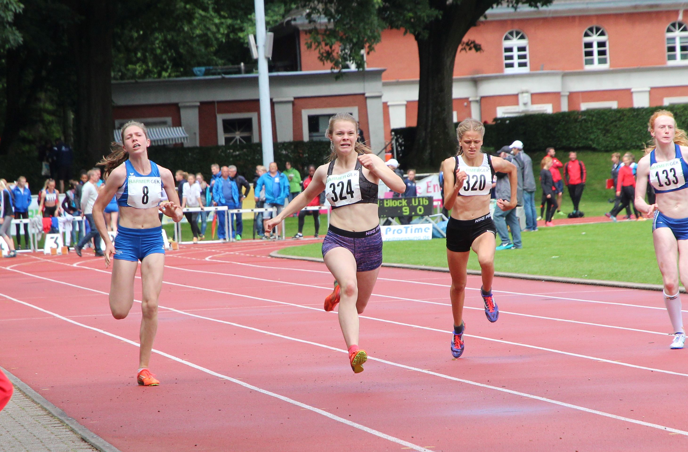 Mittelstreckentalent Nele Harjes steigerte ihre Bestzeit über 800 Meter in der AK W 14 auf 2:26,49 Minuten und platzierte sich in einem packenden Finale auf einem sehr guten sechsten Rang. Über die 100 Meter erzielten Catharina Wolf (U 20), Ann-Kathrin Steinhagen (W 15) und Lotte Gebauer (W 14) neue Bestzeiten, kamen aber jeweils nicht über den Vorlauf hinaus.