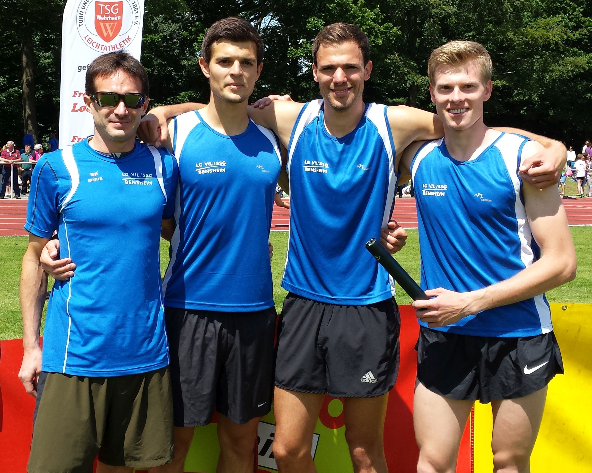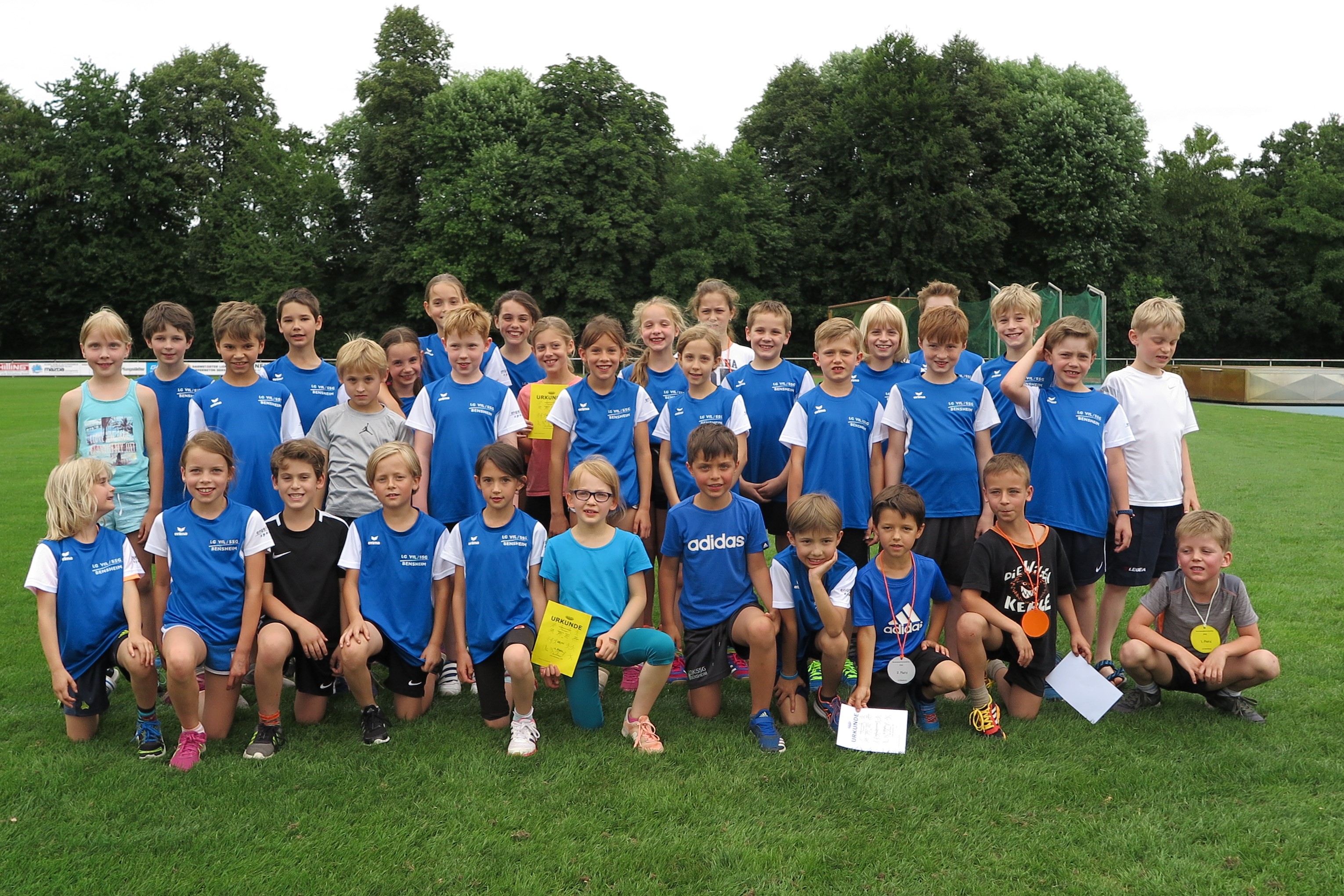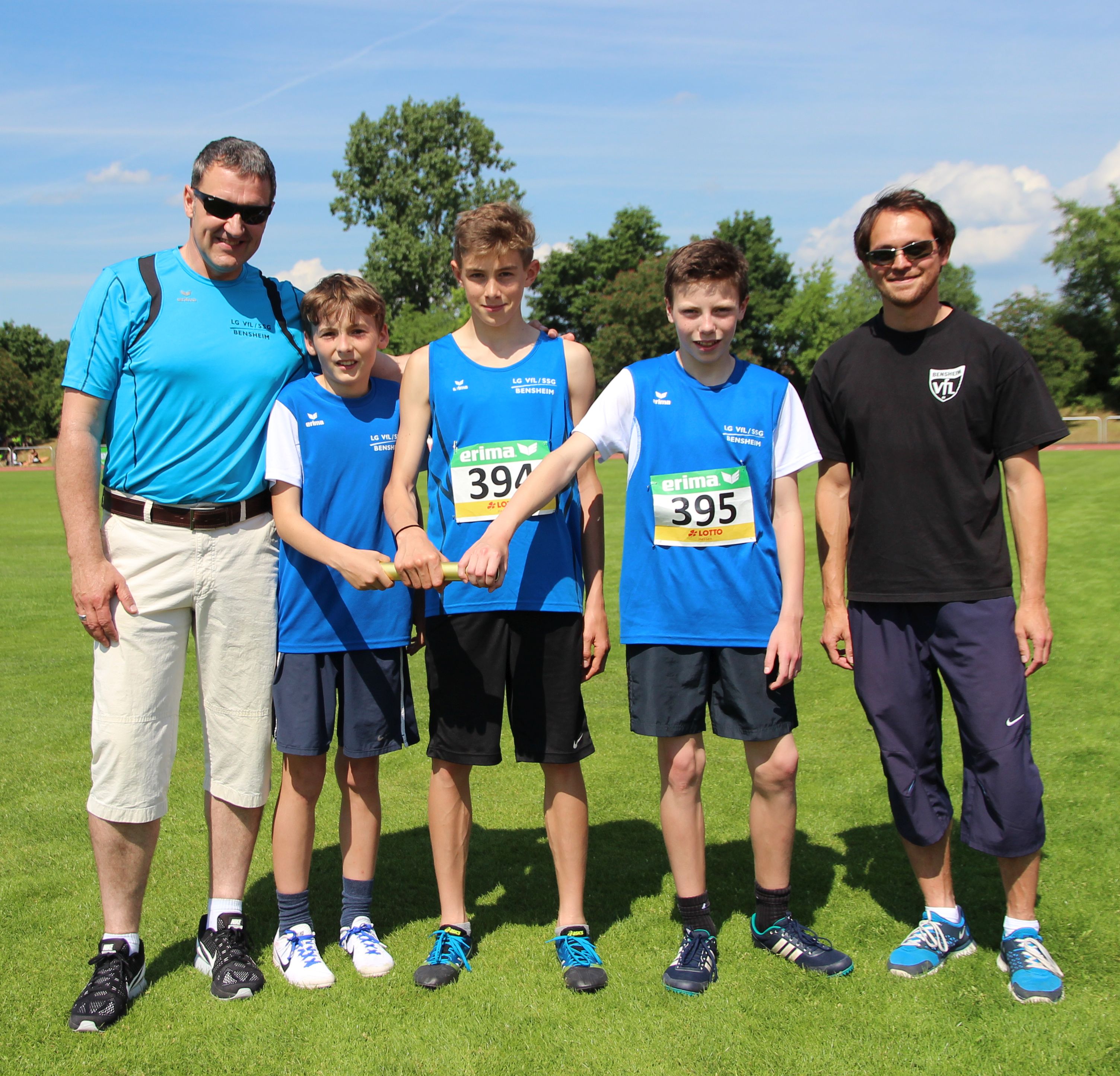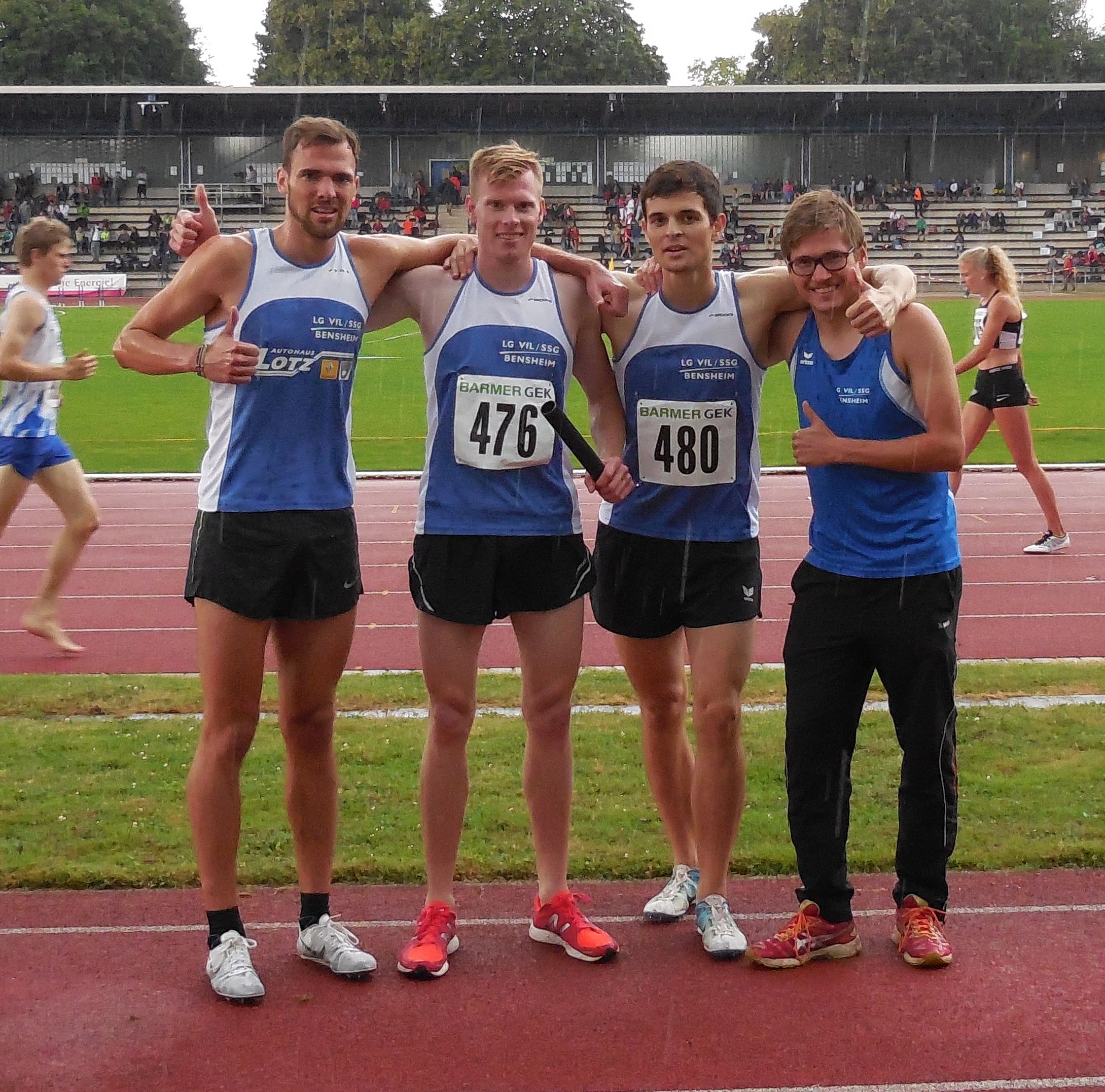 Auf Rang vier im Gruppe-1-Wettkampf platzierten sich die B-Schüler von VfL/SSG Bensheim mit 5808 Punkten. Für sie war es ein Handikap, den Hochsprungwettbewerb bei Regen austragenzu müssen. So brachten sie hier nur zweimal 1,24 Meter in die Wertung ein. Je dreimal in die Punktewertung kamen Felix Bonik und Moritz Brandt. Die Ergebnisse: 75 m: Felix Bonik: 10,4 Sek.; Moritz Brandt: 11,0 Sek.; Julius Schäfer: 11,1 Sek.; 1000 m: Maximilian Wilk: 3:25,1 Min. (pB); Johannes Henke: 3:28,6 Min.; Johannes Platten: 3:35,3 Min.; 60 m-Hürden: Moritz Brandt: 10,6 Sek. (pB); Felix Sonnabend: 11,3 Sek. (pB); Jannis Bremer: 12,0 Sek.; Weitsprung: Felix Bonik: 4,70 m (pB); Adrian Forstbach: 4,52 m (pB); Julius Schäfer: 4,36 m; Benedikt Becker: 3,94 m; Ballwurf: Moritz Brandt: 48,5 m (pB); Stefan Stehle: 41,5 m (pB); Felix Sonnabend: 40,0 m (pB); Maximilian Wilk: 28,0 m; Hochsprung: Benedikt Becker, Maximilian Wilk und Adrian Forstbach jeweils 1,24 m; 4 x 75 m 1. Staffel: Julius Schäfer, Felix Sonnabend, Adrian Forstbach, Felix Bonik: 42,1 Sek.; 2. Staffel: Johannes Platten, Jannis Bremer, Benedikt Becker, Stefan Stehle: 47,3 Sekunden.
