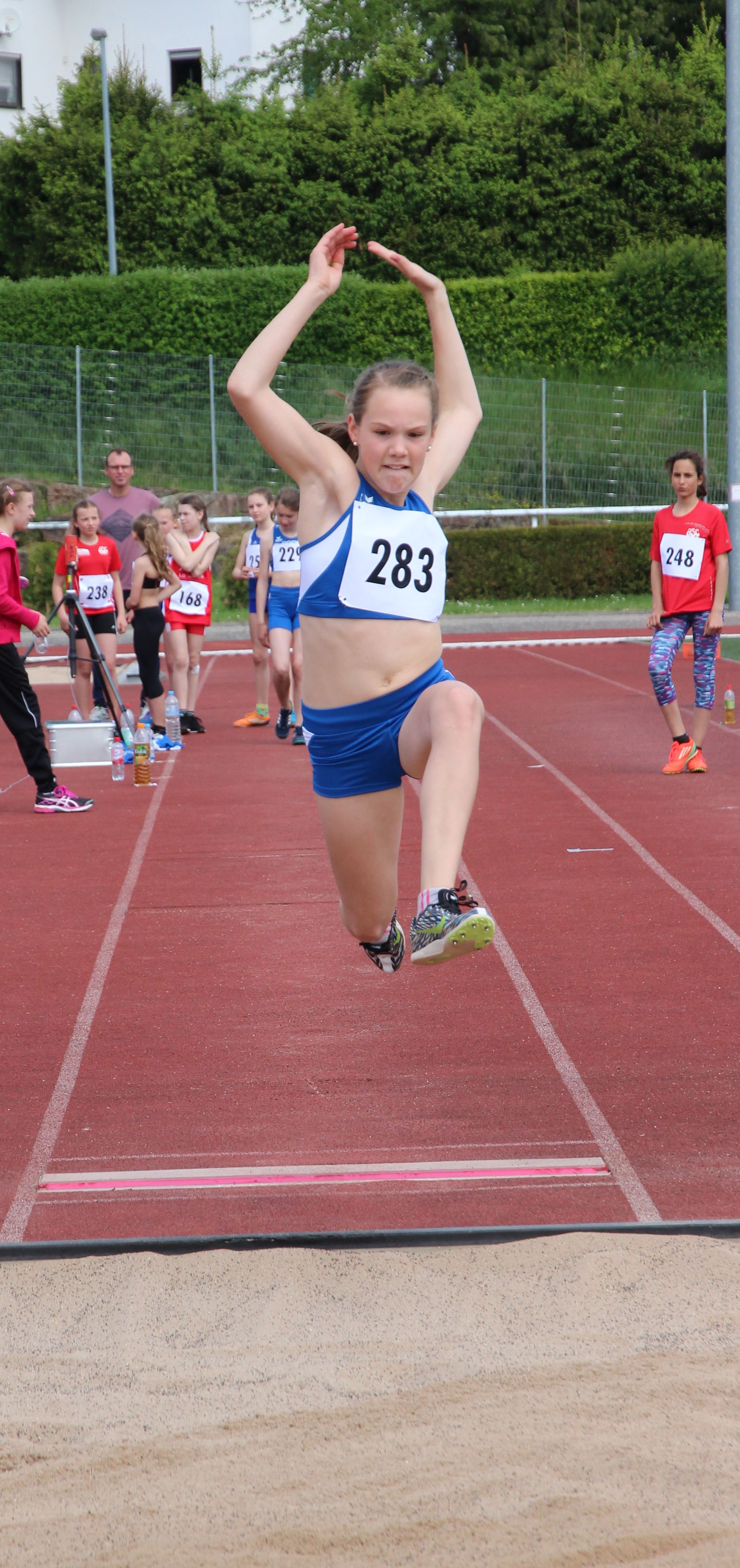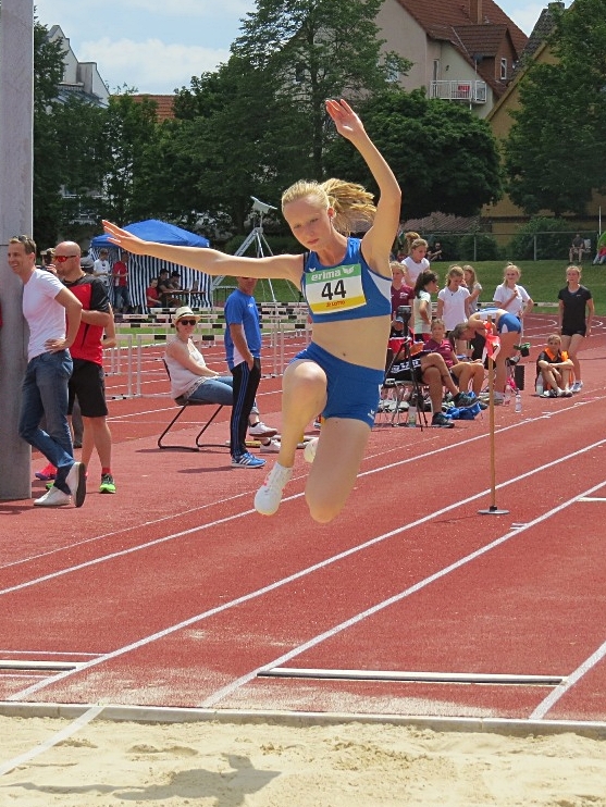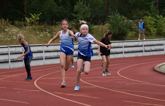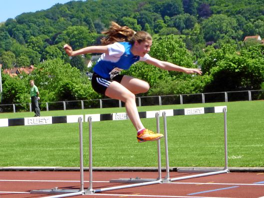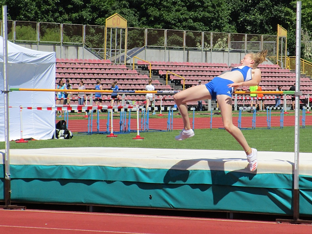 Janina Hofmann hieß die Siegerin im Hochsprung bei den A-Schülerinnen W 14 mit 1,40 Meter, höhengleich vor ihrer Vereinskameradin Holly Weaver: Ein Doppelsieg auch über 800 Meter bei den B-Schülerinnen W 13: Sabine Knippel siegte über 800 Meter mit 2:43,78 Minuten vor Sarah Wittmann mit 2:47,80 Minuten.