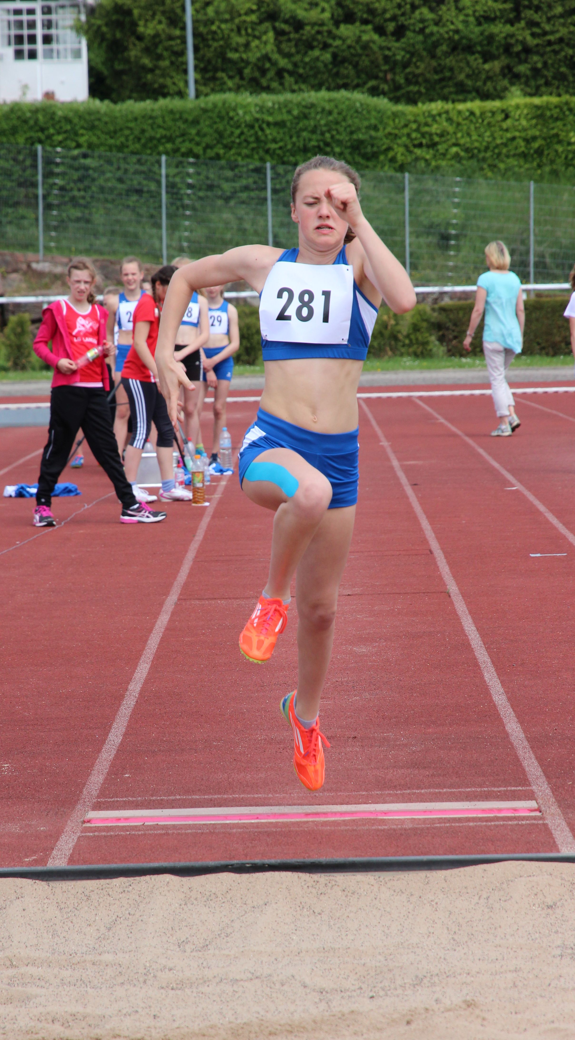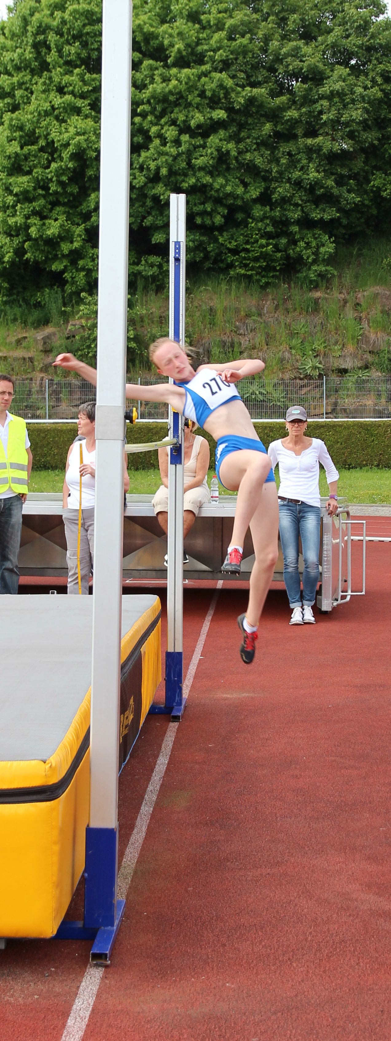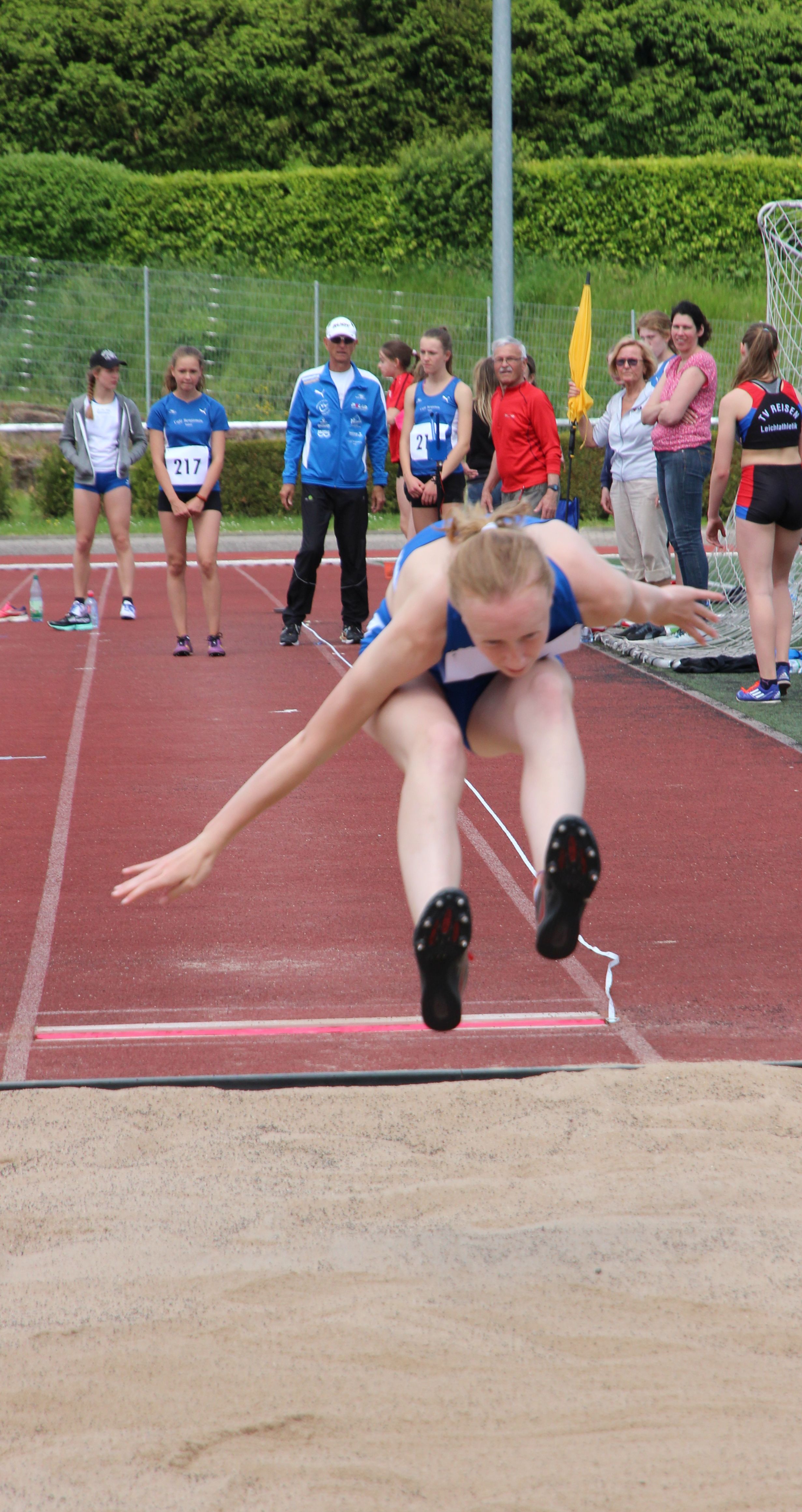 Janina Hofmann hieß die Siegerin im Hochsprung bei den A-Schülerinnen W 14 mit 1,40 Meter, höhengleich vor ihrer Vereinskameradin Holly Weaver: Ein Doppelsieg auch über 800 Meter bei den B-Schülerinnen W 13: Sabine Knippel siegte über 800 Meter mit 2:43,78 Minuten vor Sarah Wittmann mit 2:47,80 Minuten.