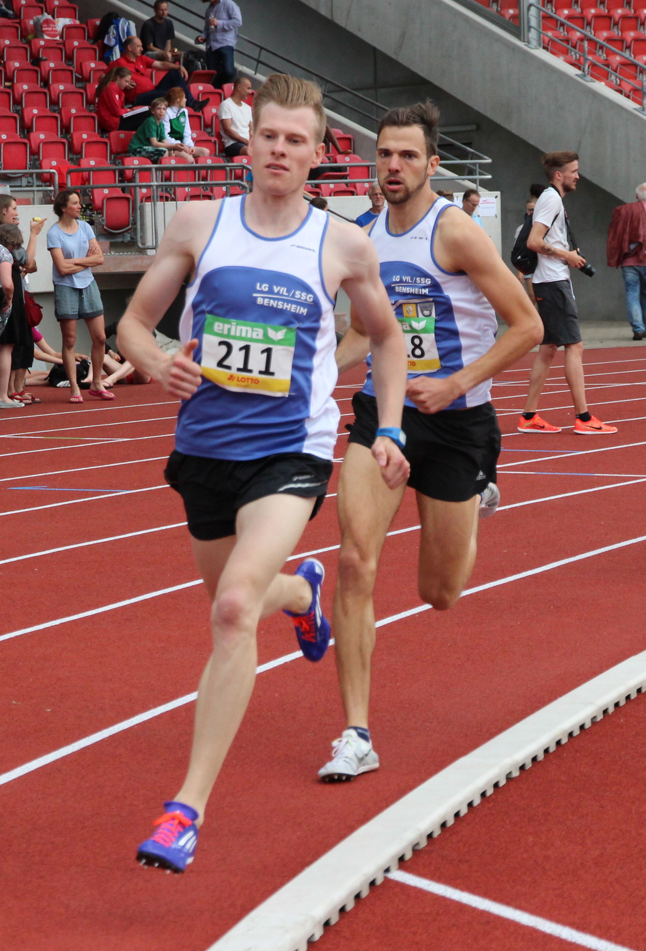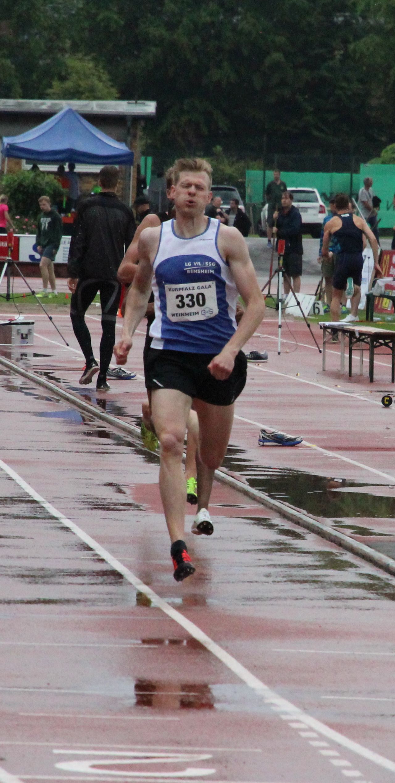 Im Alleingang musste Stephan Rapp (VfL/SSG Bensheim) über 1500 Meter beim Abendsportfest in Friedberg gehen.Ohne Unterstützung lief er nach 4:07,16 Minuten als Sieger bei den Männern durchs Ziel. Sein Vereinskamerad Marius Seibert sprintete die 200 Meter als Dritter in 22,71 Sekunden.