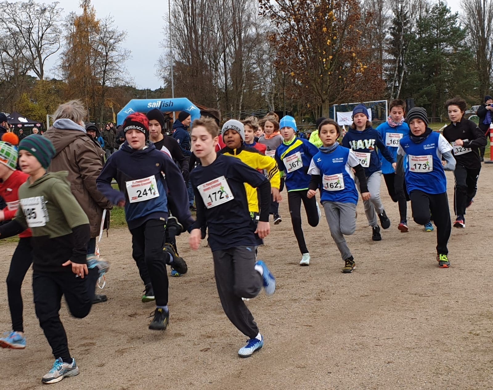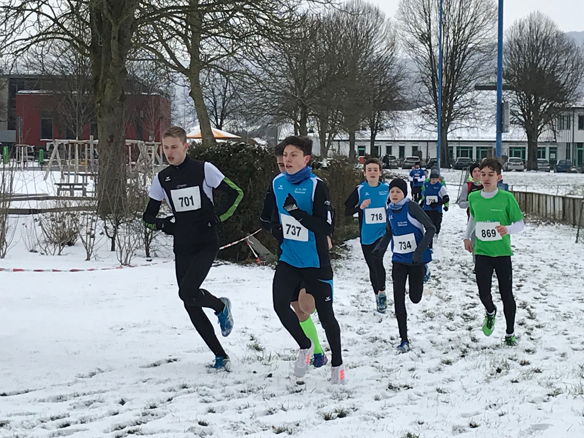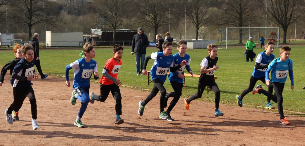 Für 40 Kinder und Jugendliche der LG Bensheim sowie Schüler der Sportklasse des AKG galt es bei winterlichen Temperaturen je nach Alter die Strecken verschiedener Längen (800 - 3000 m) querfeldein um das Stadion in Pfungstadt zu bewältigen.