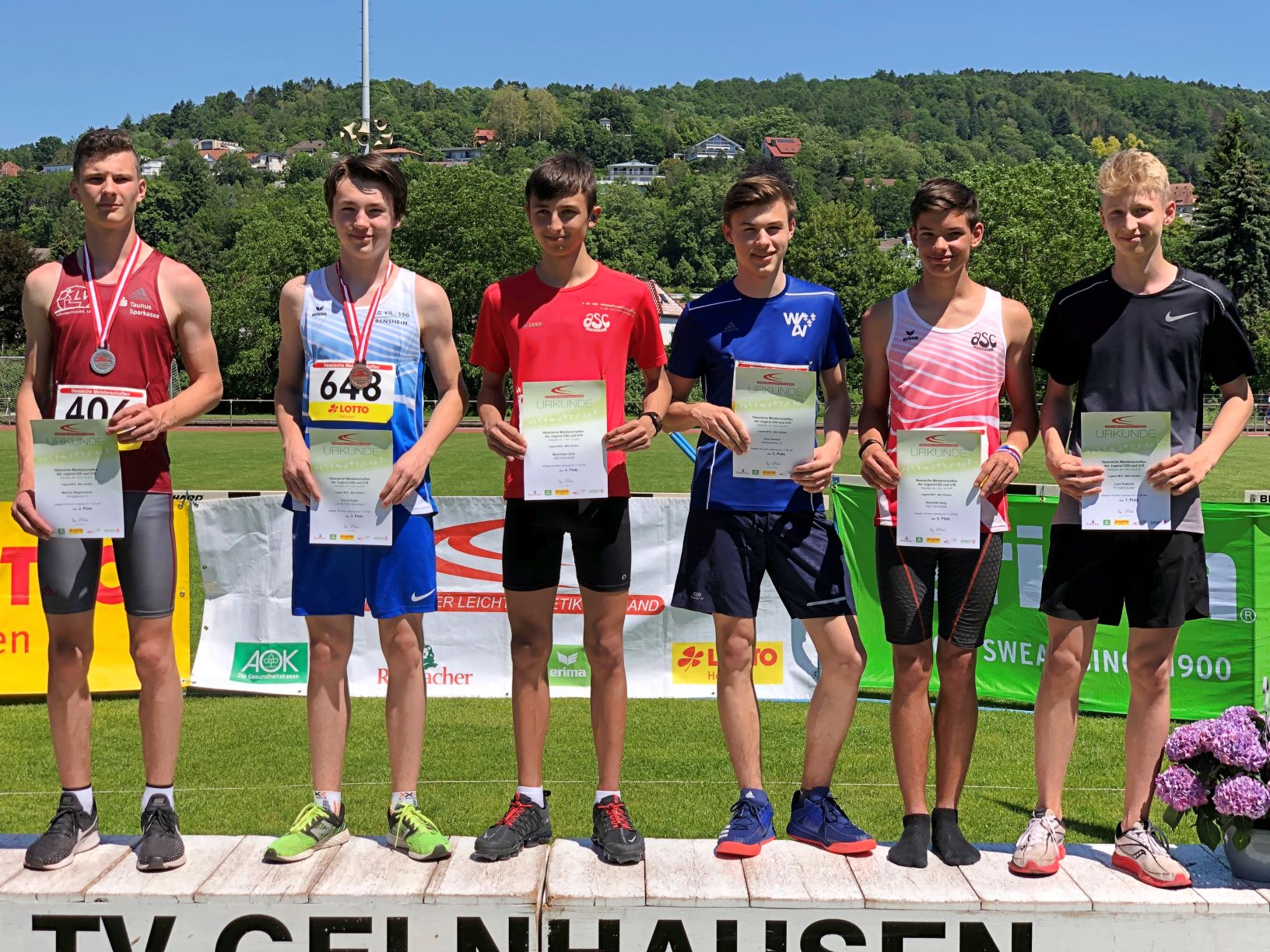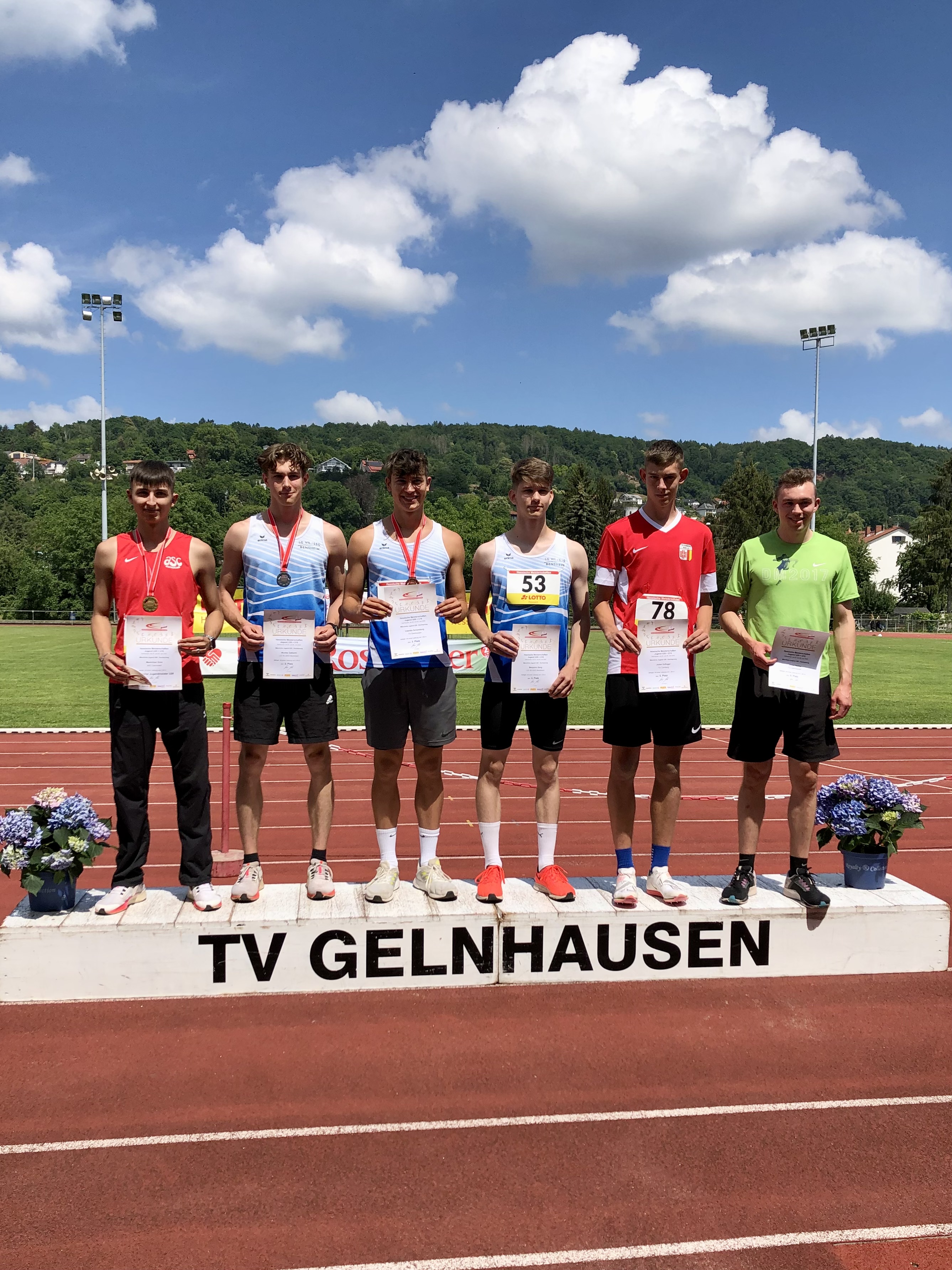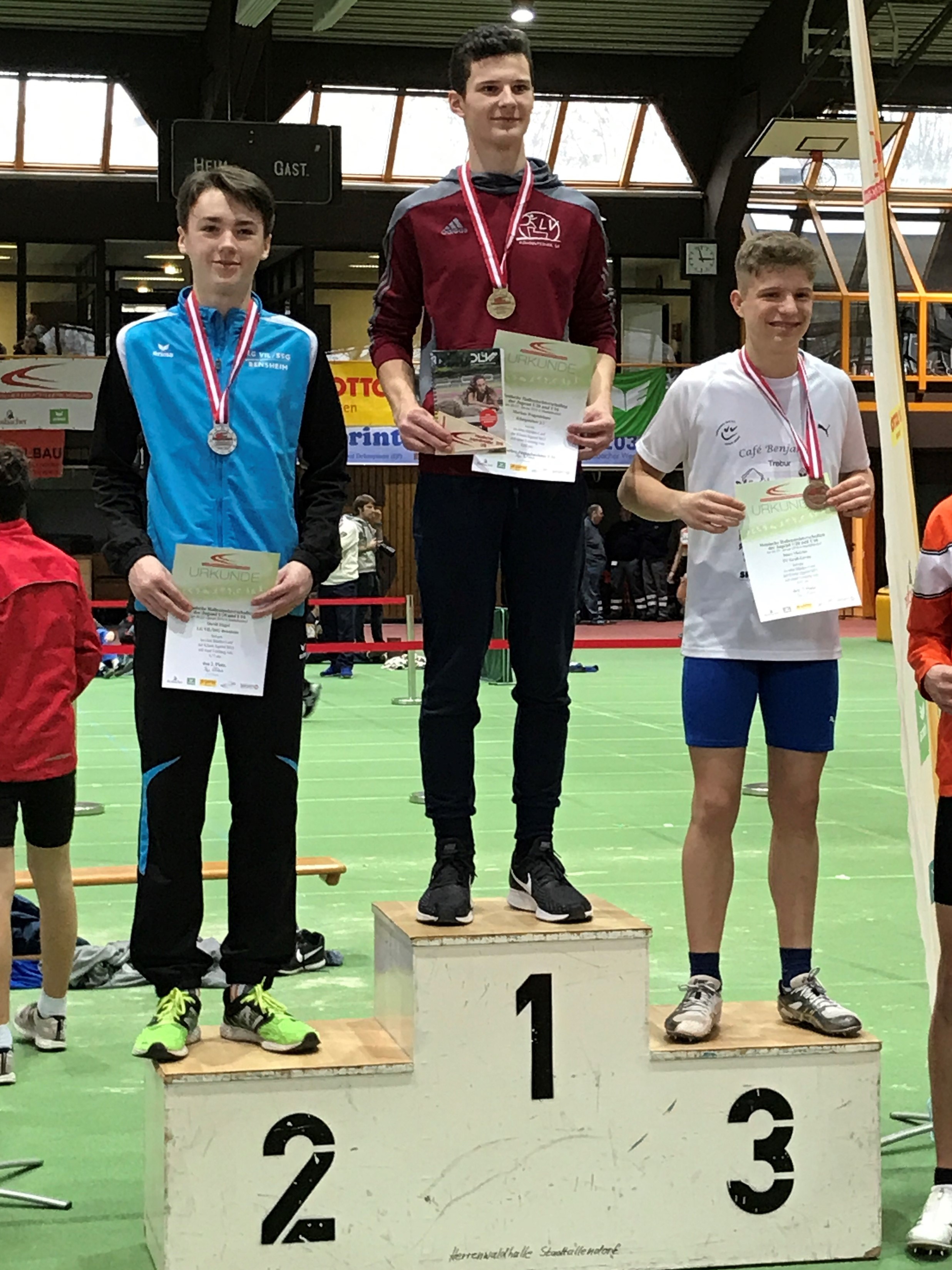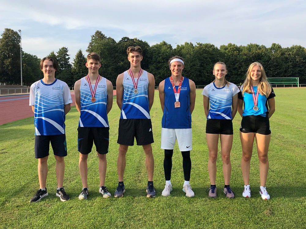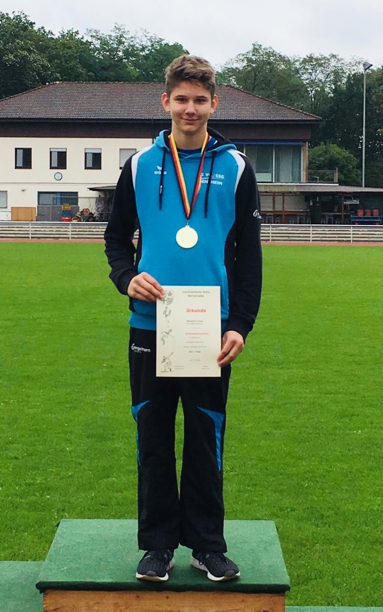 Zweimal Silber holte sich Benjamin Gang in der U 20, mit 1,85 Meter im Hochsprung und 5,93 Meter im Weitsprung. Sehr gute 1,47 Meter brachten Ann-Kathrin Steinhagen im Hochsprung der W 15 die Vizemeisterschaft. Über 100 Meter wurde sie in 13,57 Sekunden Dritte. Ebenfalls Rang drei erzielten in der AK M 14 Jonas Köber mit dem Speer (25,11 Meter) und Nick Schrettlinger über die 100 Meter in 12,93 Sekunden. Johannes Bitsch wusste in der AK M 13 mit Platz zwei im Weitsprung (4,48 Meter) sowie Rang drei in 10,72 Sekunden über 75 Meter zu gefallen. Einen Platz höher auf dem Podium kletterten über die 800 Meter Sebastian Tscheulin in der AK M 14 mit 2:26,18 Minuten und Lina Ross in der W13 mit 2:39,70 Minuten.