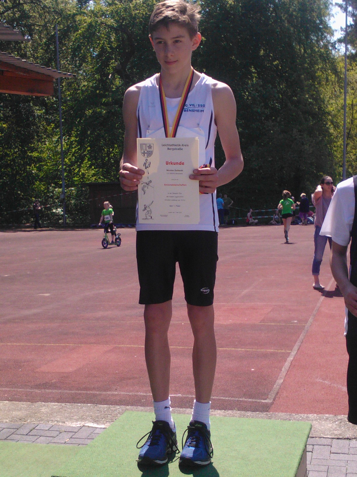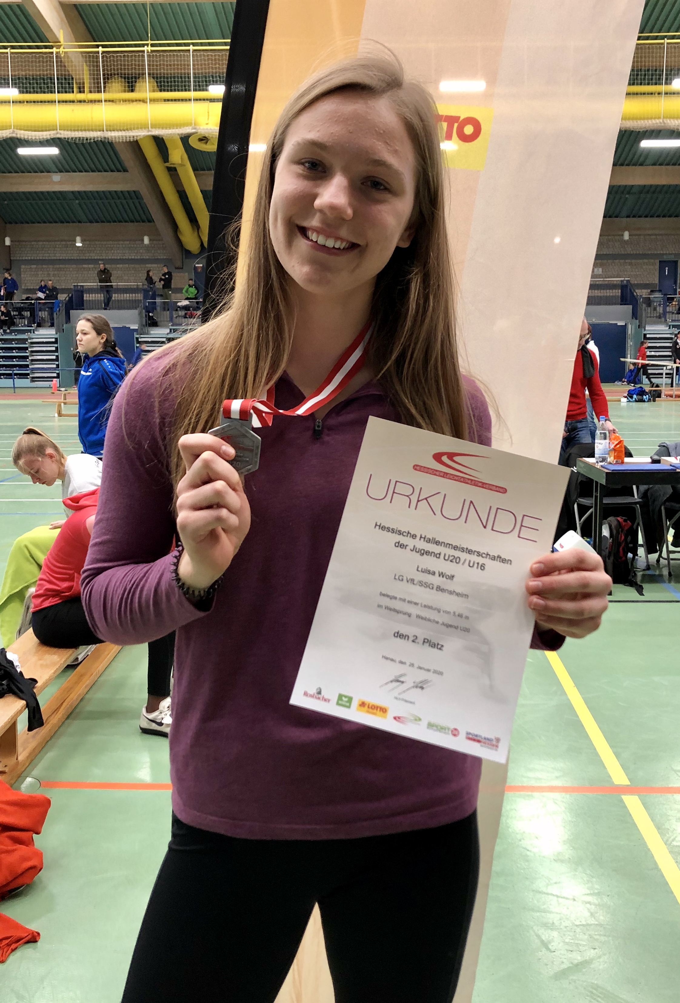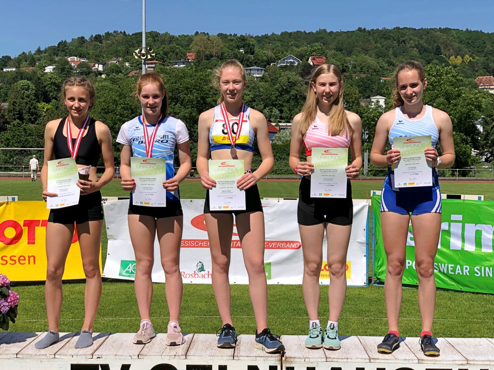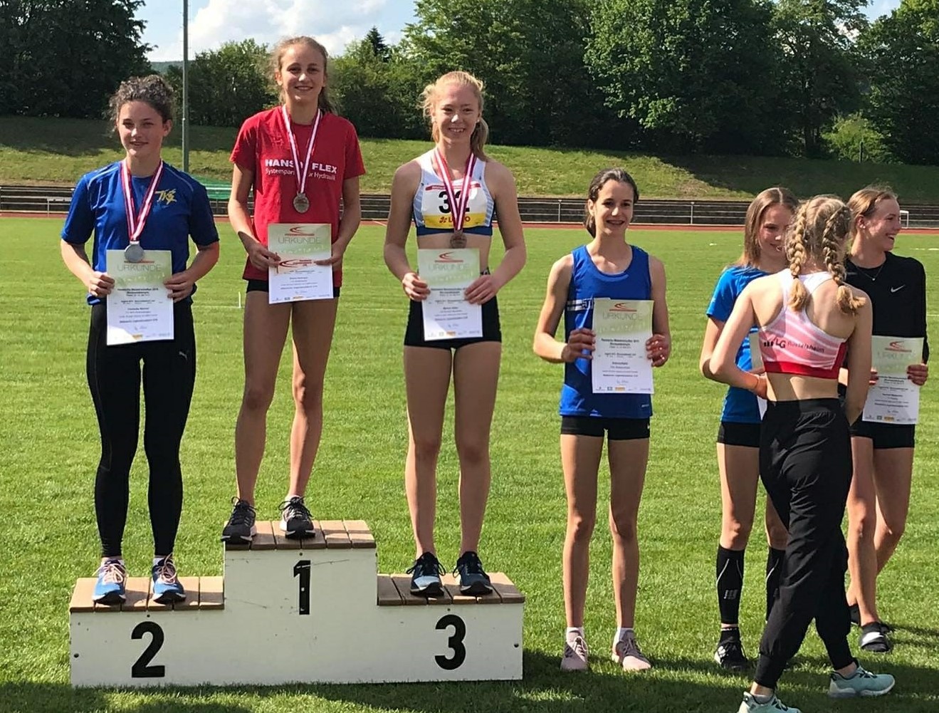Zweimal Silber holte sich Benjamin Gang in der U 20, mit 1,85 Meter im Hochsprung und 5,93 Meter im Weitsprung. Sehr gute 1,47 Meter brachten Ann-Kathrin Steinhagen im Hochsprung der W 15 die Vizemeisterschaft. Über 100 Meter wurde sie in 13,57 Sekunden Dritte. Ebenfalls Rang drei erzielten in der AK M 14 Jonas Köber mit dem Speer (25,11 Meter) und Nick Schrettlinger über die 100 Meter in 12,93 Sekunden. Johannes Bitsch wusste in der AK M 13 mit Platz zwei im Weitsprung (4,48 Meter) sowie Rang drei in 10,72 Sekunden über 75 Meter zu gefallen. Einen Platz höher auf dem Podium kletterten über die 800 Meter Sebastian Tscheulin in der AK M 14 mit 2:26,18 Minuten und Lina Ross in der W13 mit 2:39,70 Minuten.