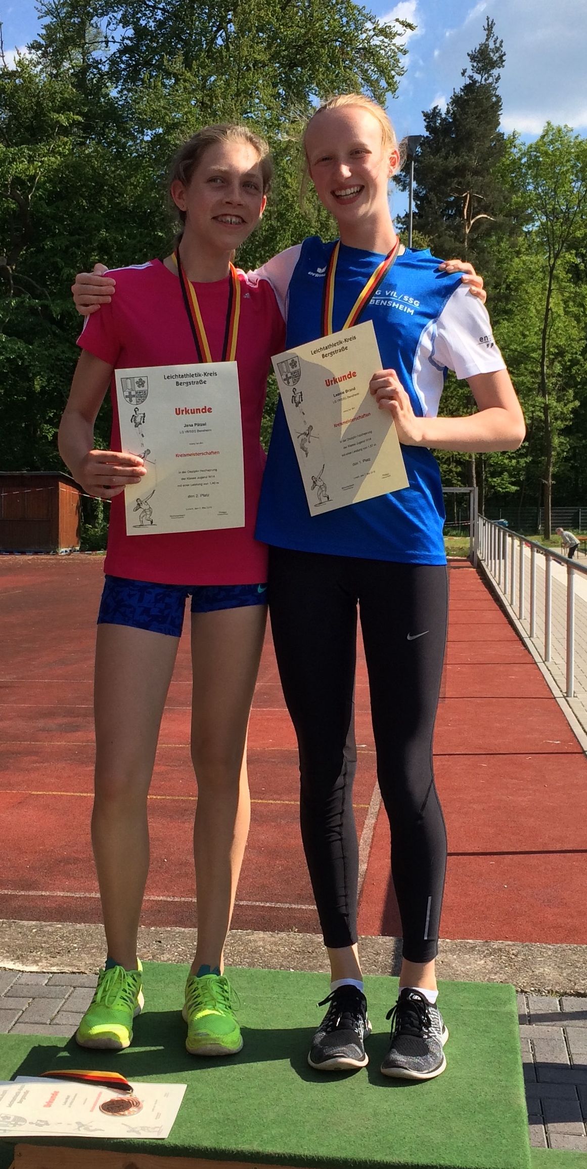 Äußerst zufrieden zeigten sich die Trainer Markus Forster und Rainer Hartmann auch über alle weiteren Ergebnisse der Bensheimer Crew - nur war ihnen "unverständlich, dass Lisa Nelle ihren hessischen Hürdentitel nicht verteidigen wollte."