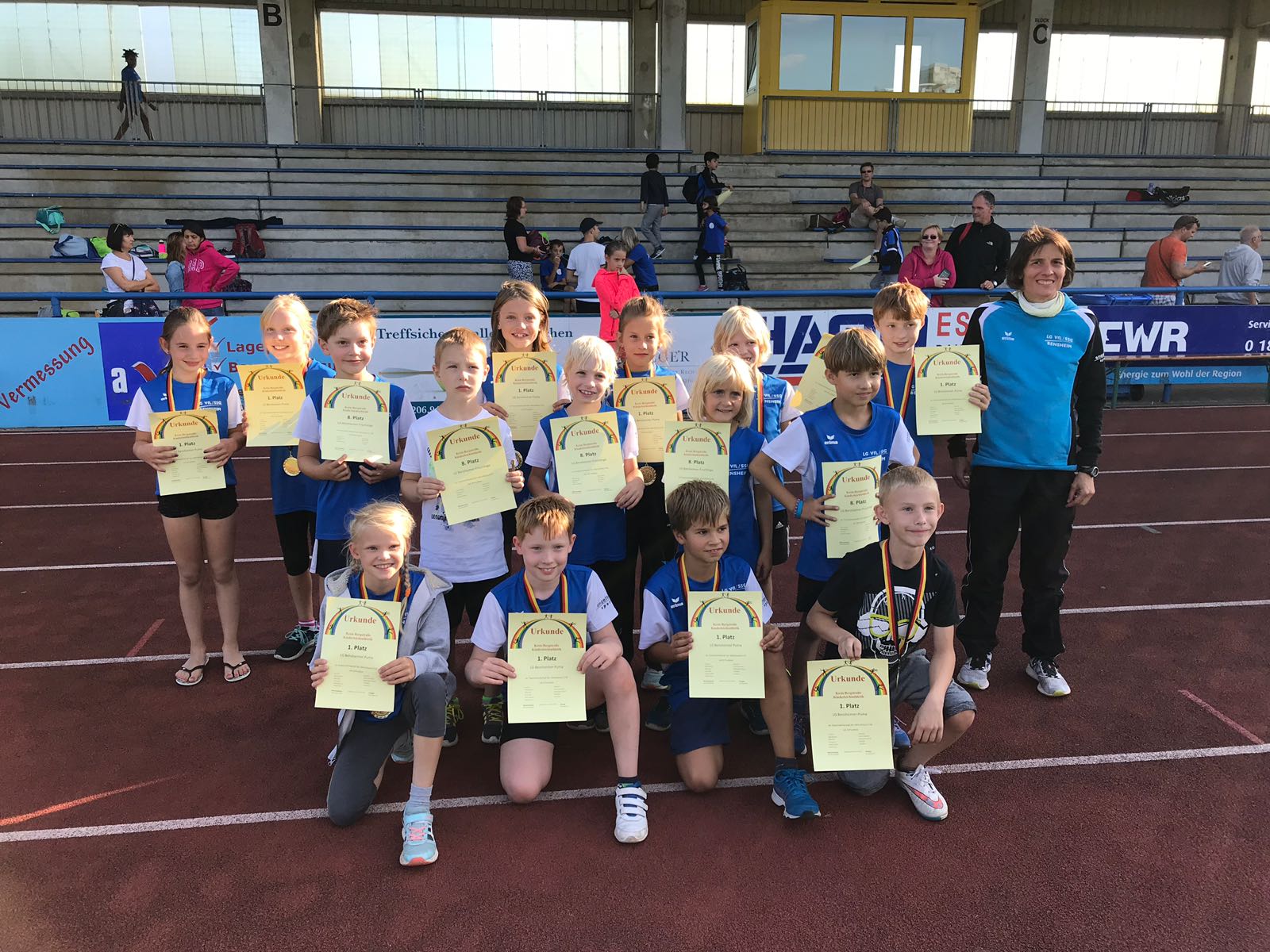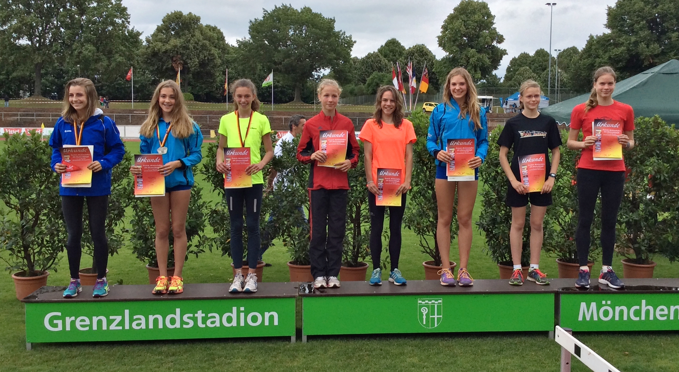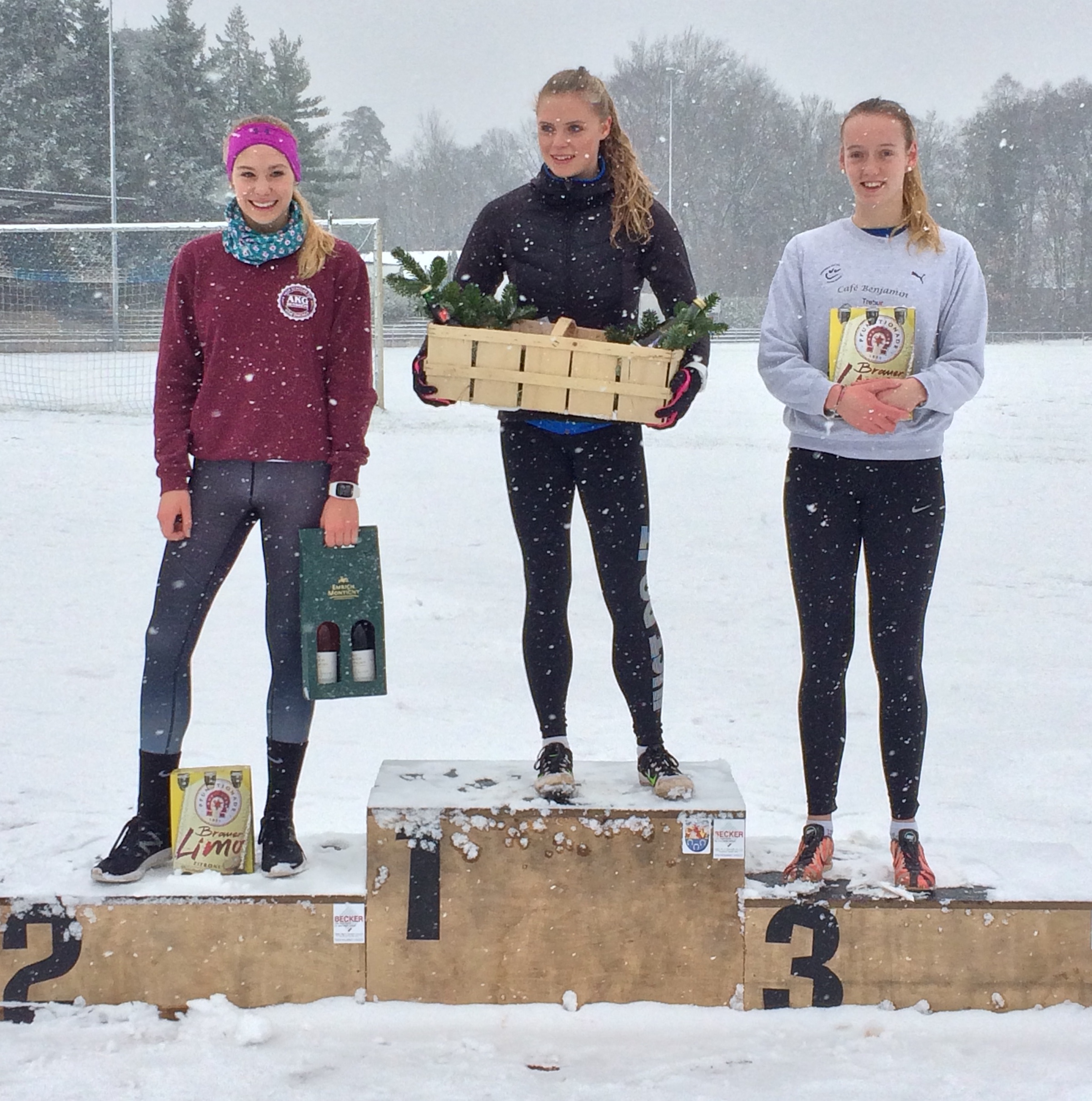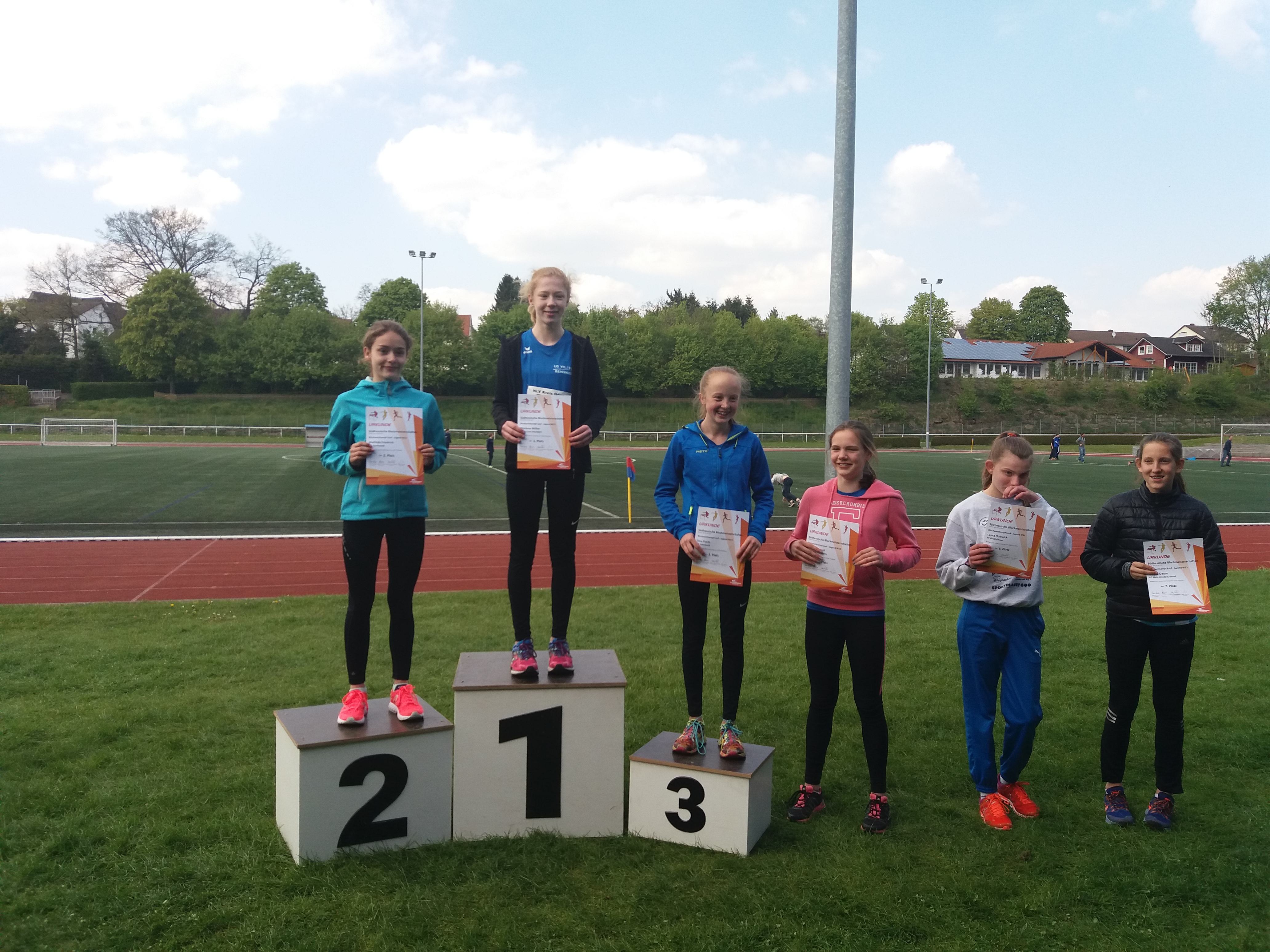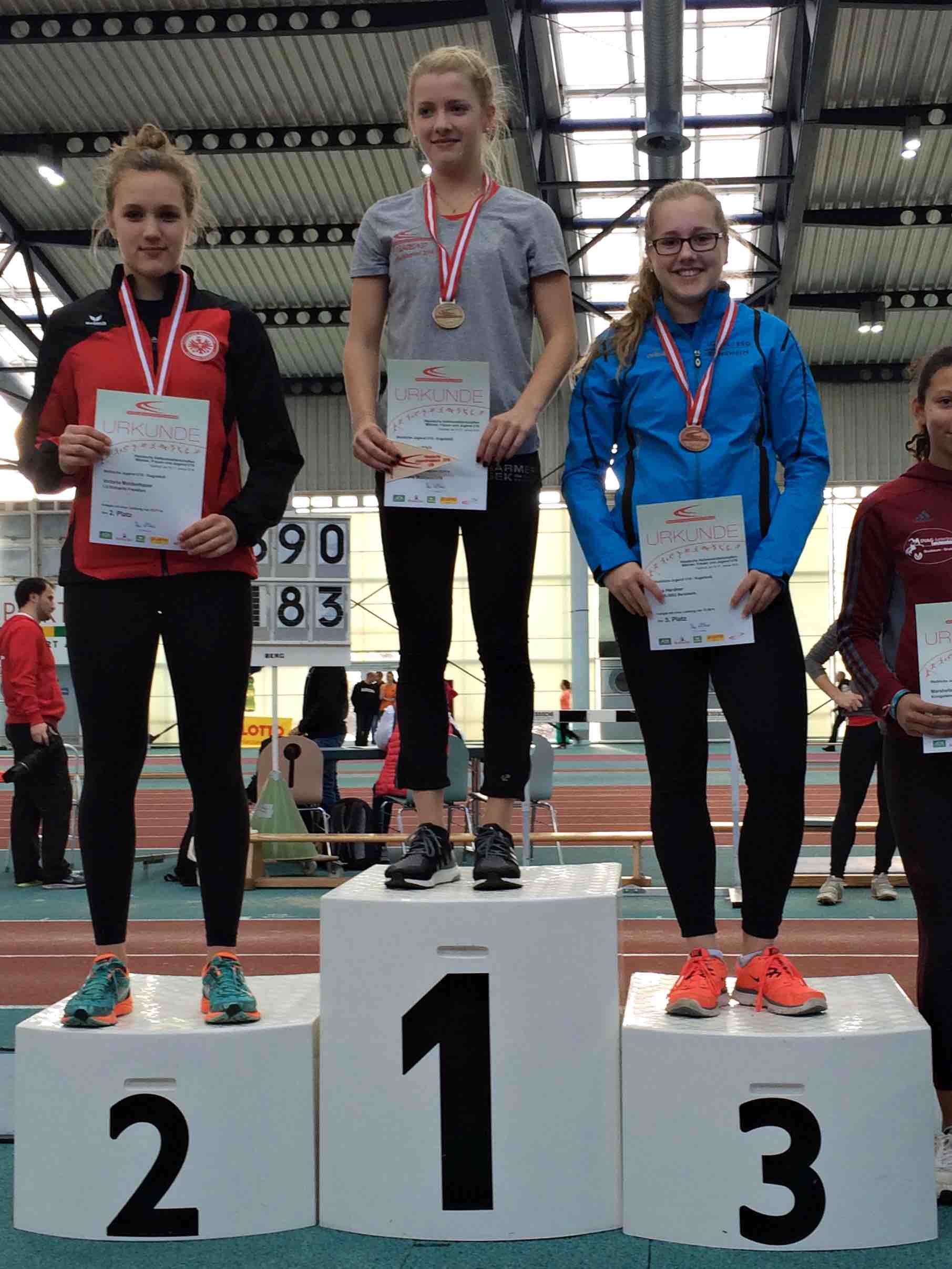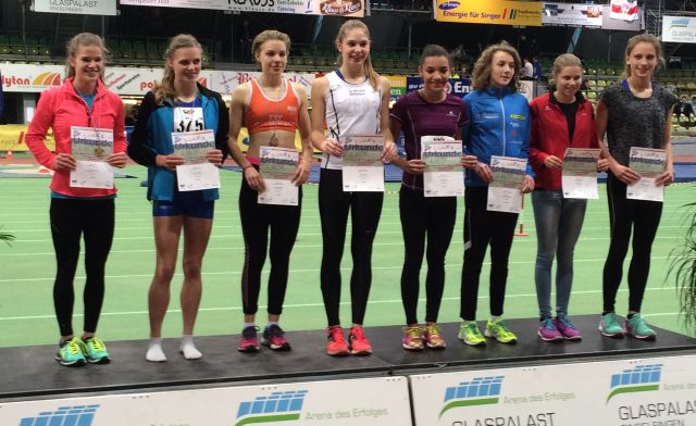 Die Ergebnisse: 75 m: Nicole Keim: 10,1 Sek.; Kathrin Stiehl:10,3 Sek.; Verena Schumacher: 11,3 Sek.; 800 m: Sabine Knippel: 2:40,1 Min.; Sarah Wittmann: 2:46,5 Min.; Eva Heinecker: 2:56,5 Min.; 60 m-Hürden: Kathrin Stiehl: 9,8 Sek. (pB); Eva Heinecker: 11,9 Sek. (pB); Mareike Dietzsch: 12,1 Sek. (pB); Verena Schumacher: 14,0 Sek.; Hochsprung: Nicole Keim: 1,44 m (pB); Sabine Knippel: 1,36 m (pB); c1,32 m (pB); Eva Heinecker: 1,24 m (pB); Weitsprung: Nicole Keim: 4,97 m; Mareike Dietzsch: 4,18 m (pB); Nina Schneider: 4,03 m; Ballwurf: Sarah Krocker: 37,5 m (pB); Nina Schneider: 33,0 m; Nina Gorzawski: 32,0 m; Christine Dehof: 28,5 m; 4 x 75 m 1. Staffel: Sarah Krocker, Mareike Dietzsch, Kathrin Stiehl, Sabine Knippel: 41,6 Sek.; 2. Staffel: Christine Dehof, Nina Gorzawski, Nina Schneider, Verena Schumacher: 44,3 Sek..