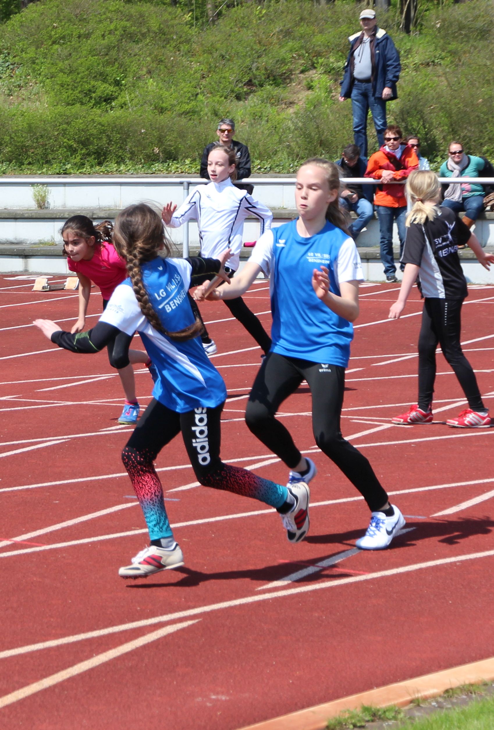 Zwei Schülerstaffeln können sich Hoffnungen auf einen Medaillenplatz kommende Woche in Wetzlar bei den "Hessischen" machen. Während dies die A-Schüler Florian Kunkel, Julian Merz, Florian Blechschmidt und Patrick Hofmannes mit 47,97 Sekunden über 4 x 100 Meter in Heidelberg schon bestätigten, patzten die A-Schülerinnen Lisa Nelle, Gesine Richter, Katrin Stiehl und Lisa Bauer; sie wurden wegen Wechselfehler disqualifiziert.