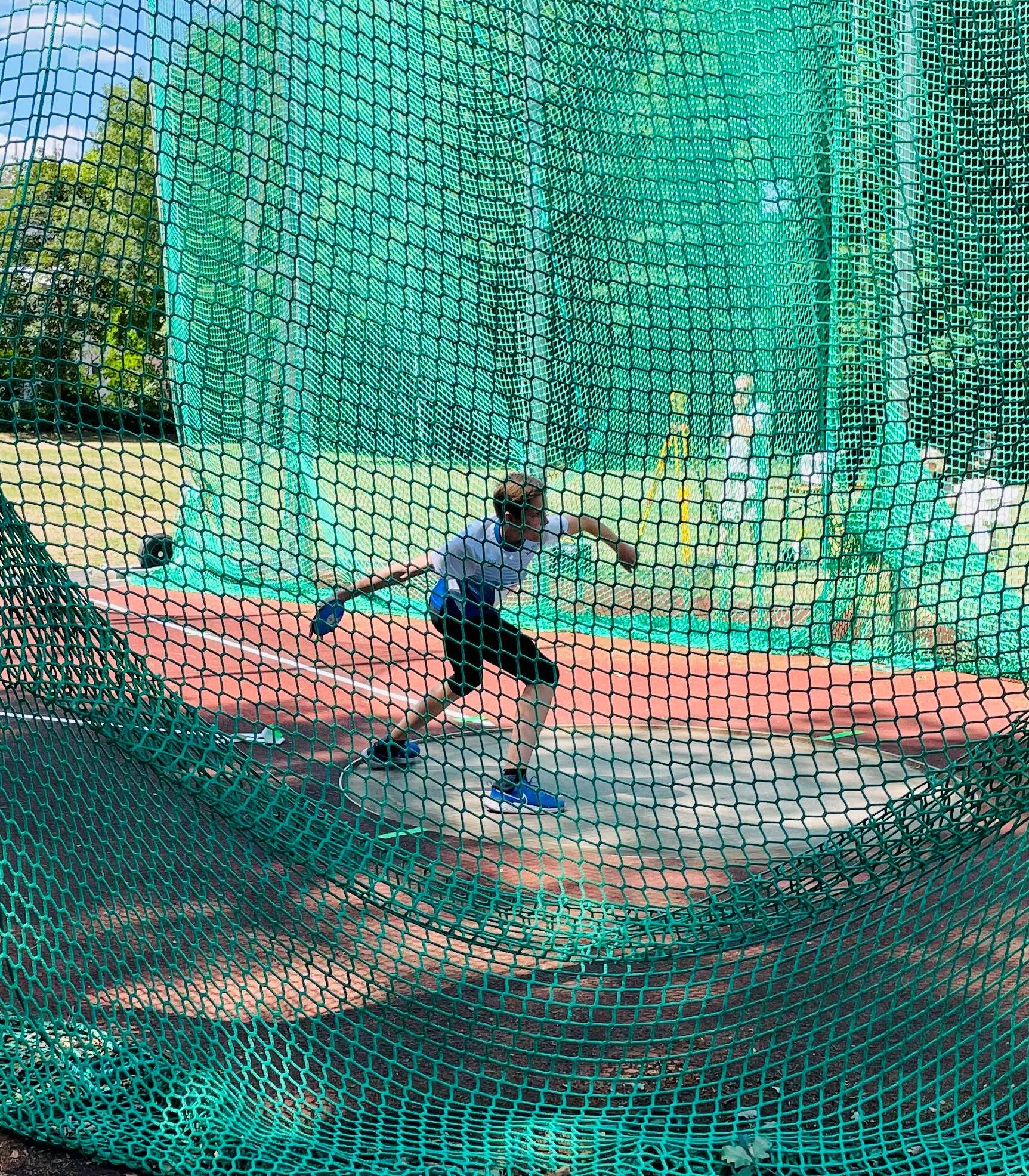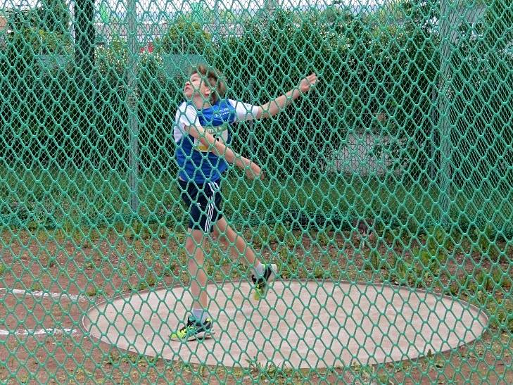 Der amtierende Hessenmeister Julian Merz startete in der A-Schülerklasse M 14 im Block Wurf mit neuer persönlicher Bestzeit von 12,36 Sekunden über 100 Meter in den Wettkampf, stürzte dann aber in der zweiten Disziplin, dem 80 Meter-Hürdenlauf (13,13 Sek.), an der letzten Hürde und vergab damit alle Chancen auf eine gute Platzierung. Weitere 5,52 Meter im Weitsprung, 11,76 Meter im Kugelstoßen und 32,53 Meter im Diskuswerfen erbrachten am Ende 2675 Punkte und Rang 18.