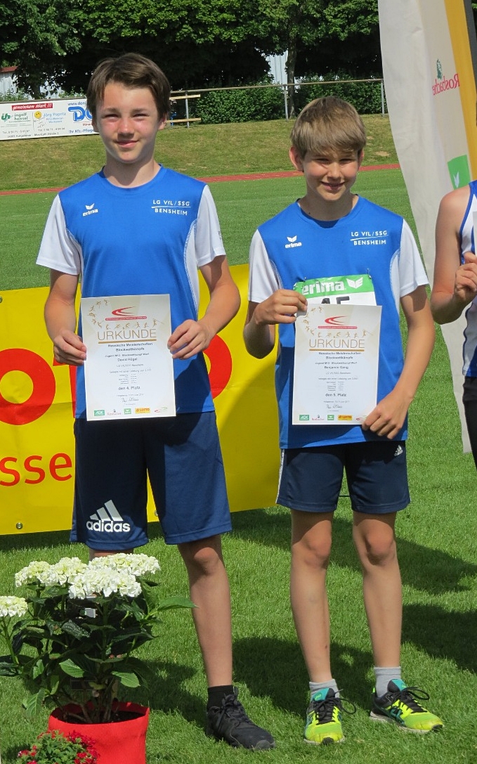 Mit Julian Merz (M 14) und Kolja Breuer (M 14) schafften zwei A-Schüler von VfL/SSG Bensheim die Qualifikation für die deutschen Block-Mehrkampfmeisterschaften der Leichtathleten am 14. August in Rhede. Sie erbrachten die überragende Leistung bei den hessischen Block-Mehrkampfmeisterschaften in Bad Homburg mit dem Hessentitel und der Vizemeisterschaft und krönten damit ein erfolgreiches Wochenende für die A- und B-Schüler von VfL und SSG Bensheim.