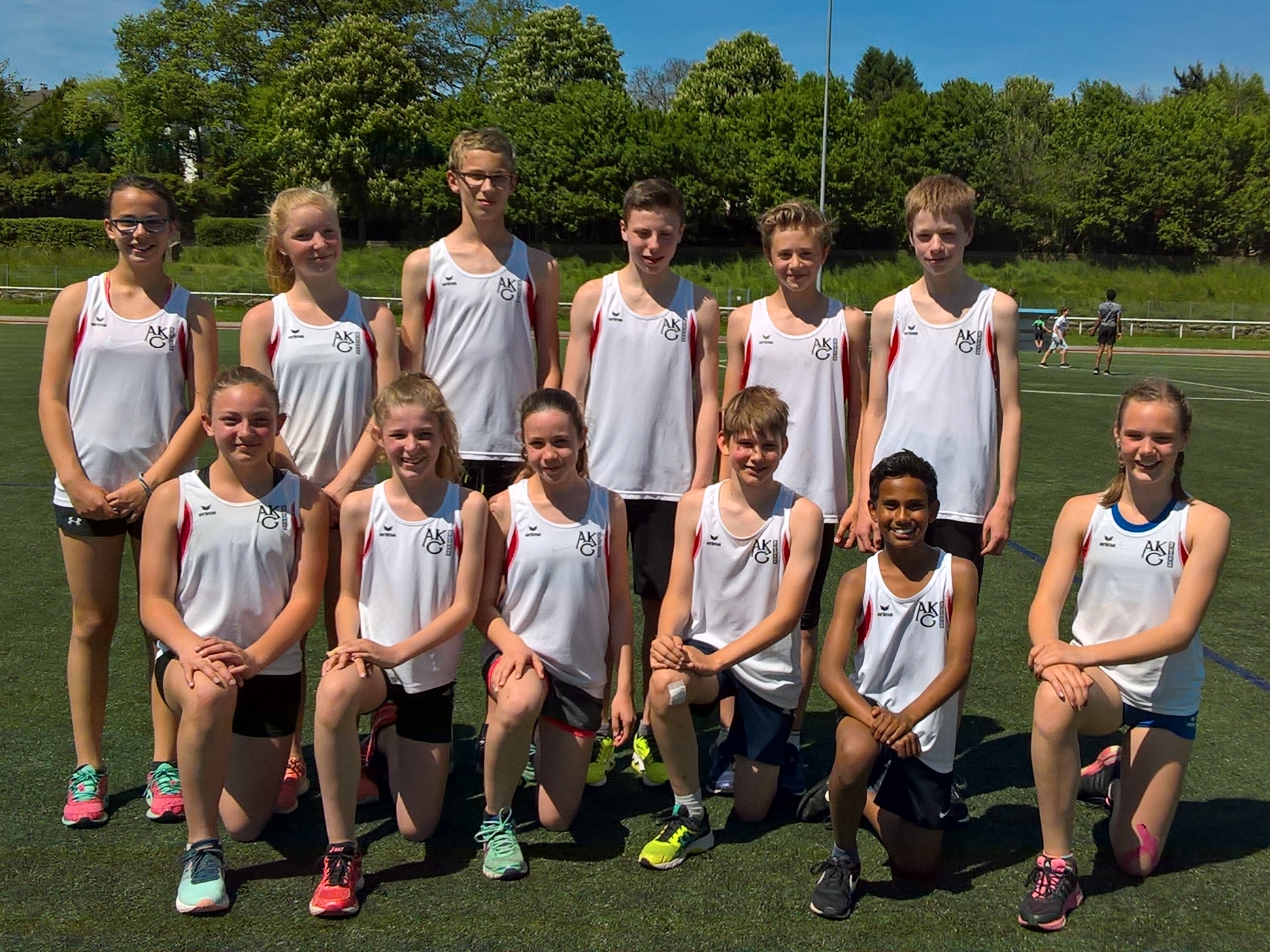Mit einer Mädchen- und einer Jungen-Mannschaft der Wettkampfklasse III (Jahrgänge 2007 bis 2010) war das AKG Bensheim beim Leichtathletik-Regionalentscheid Jugend trainiert für Olympia in Seeheim-Jugenheim vertreten. Bei hochsommerlichen Temperaturen um 30 Grad überzeugten dabei besonders die Mädchen mit einer geschlossenen Teamleistung. Vor allem die 4x75-Meter-Staffel, in der Besetzung Lotte Gebauer-Mathilda Paasche-Leni Bitsch-Ann-Kathrin Steinhagen, wusste in sehr guten 39,5 Sekunden zu gefallen und distanzierte die Konkurrenz um fast zwei Sekunden. Dabei profitierte man sicher auch vom konzentrierten Wechsel-Training der vergangenen Wochen. Im Endklassement lagen die AKG-Mädchen mit 6572 Punkten deutlich vor dem Schuldorf Bergstraße (6343 P.) und der Pestalozzi-Schule Idstein (6161 P.). Damit gelang der Regionalsieg und die Qualifikation für den Landesentscheid, der im Juni in Gelnhausen stattfinden wird.