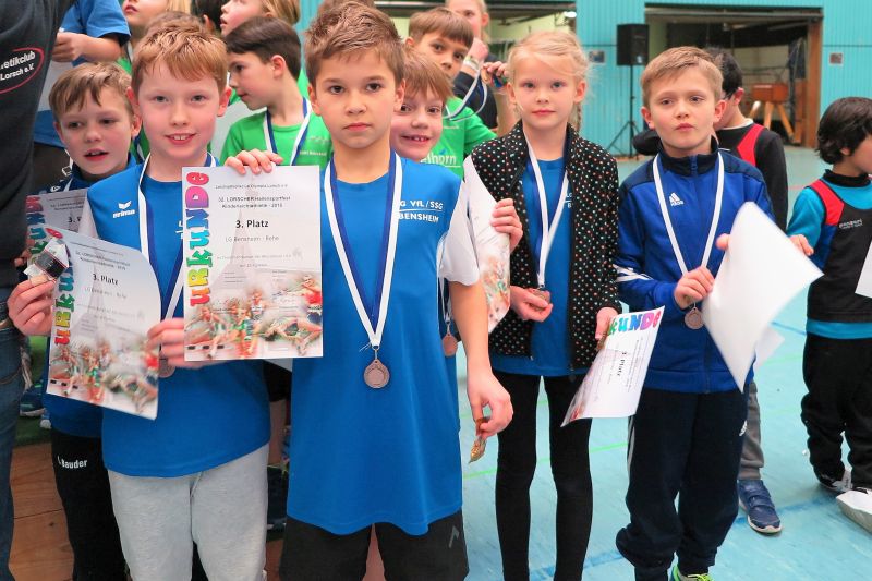 Einen kompletten Medaillensatz für die LG gab es dann noch in den Mannschaftswertungen. Hier werden in den beiden Altersklasse U 16 und U 14 jeweils die Punktzahlen der drei besten Sportler eines Vereins bzw. einer LG zusammengezählt. Überlegener südhessischer Mannschaftsmeister im Blockmehrkampf der U 14 wurden die Mädchen der LG VfL/SSG Bensheim, in der Besetzung Lina Harjes, Anne Vetter und Lina Ross. Gleich zwei LG-Teams platzierten sich in der U 14 der Jungen. Johannes Bitsch, Lennox Veith und Jakob Köber holten Silber. Linus Busse, Finnian Hill und Jonathan Ohl kamen auf Rang fünf. Auf dem Bronzerang landete das Team der Mädchen in der U 16 mit Ann-Kathrin Steinhagen, Mathilda Paasche und Nele Harjes.