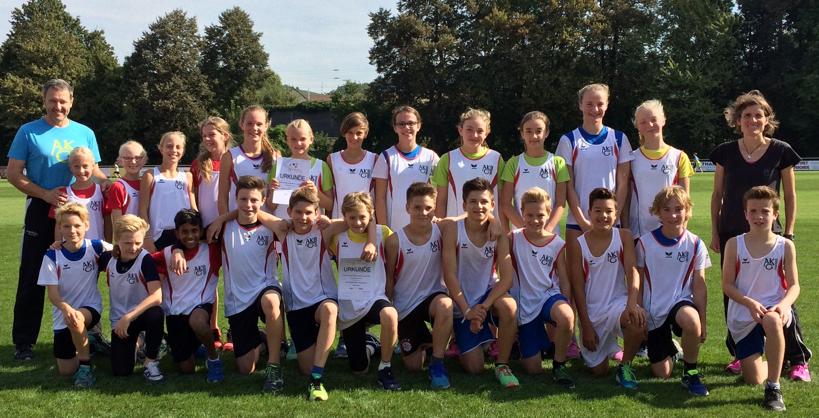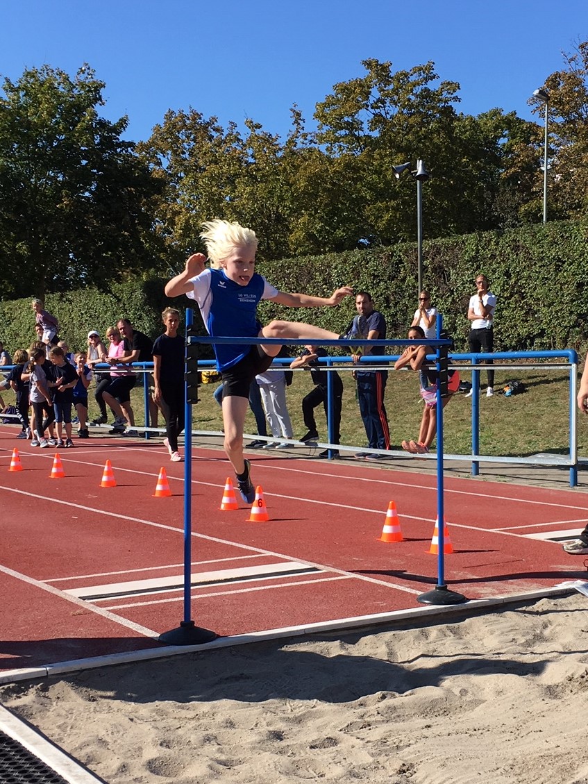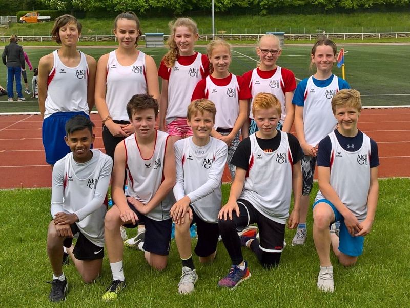 Und dies gelang den insgesamt 24 Mädchen und Jungen der Jahrgänge 2009 bis 2011 glänzend. Ein Team besteht aus jeweils sechs Mädchen und Jungen. Die erste Mannschaft siegte in allen fünf zu absolvierenden Disziplinen – 50-Meter-Sprint, Weitsprung, Heulball-Wurf, Hindernis-Pendelstaffel und Zehn-Minuten-Lauf. Aus einer geschlossenen Mannschaftsleistung ragten 48 Meter mit dem Heulball von Leon Bartz, 4,37 Meter von Lina Harjes im Weitsprung sowie jeweils 2600 gelaufene Meter von Nils Glock und Moritz Bartz im Zehn-Minuten-Lauf heraus. Am Ende triumphierte die erste AKG-Mannschaft mit der Optimal-Punktzahl von fünf Ranglistenpunkten und wurde überlegener Sieger des Schulamtsentscheides.