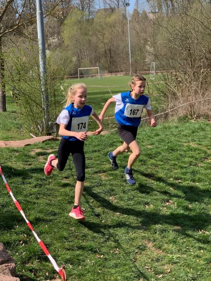Den Anfang machten die Jungen und Mädchen der Altersklasse unter acht Jahren (U8). Ein Runde von ca. 830 m Länge über Wiesen und Hügel musste absolviert werden. Im Ziel durften sich Antonia Holland (W6) und Isabella Kohr (W7) über den Bronzeplatz freuen. In der Besetzung Isabella Kohr, Carla Stemann und Luise Fritzsche ging der Sieg in der Teamwertung an die LG Bensheim.