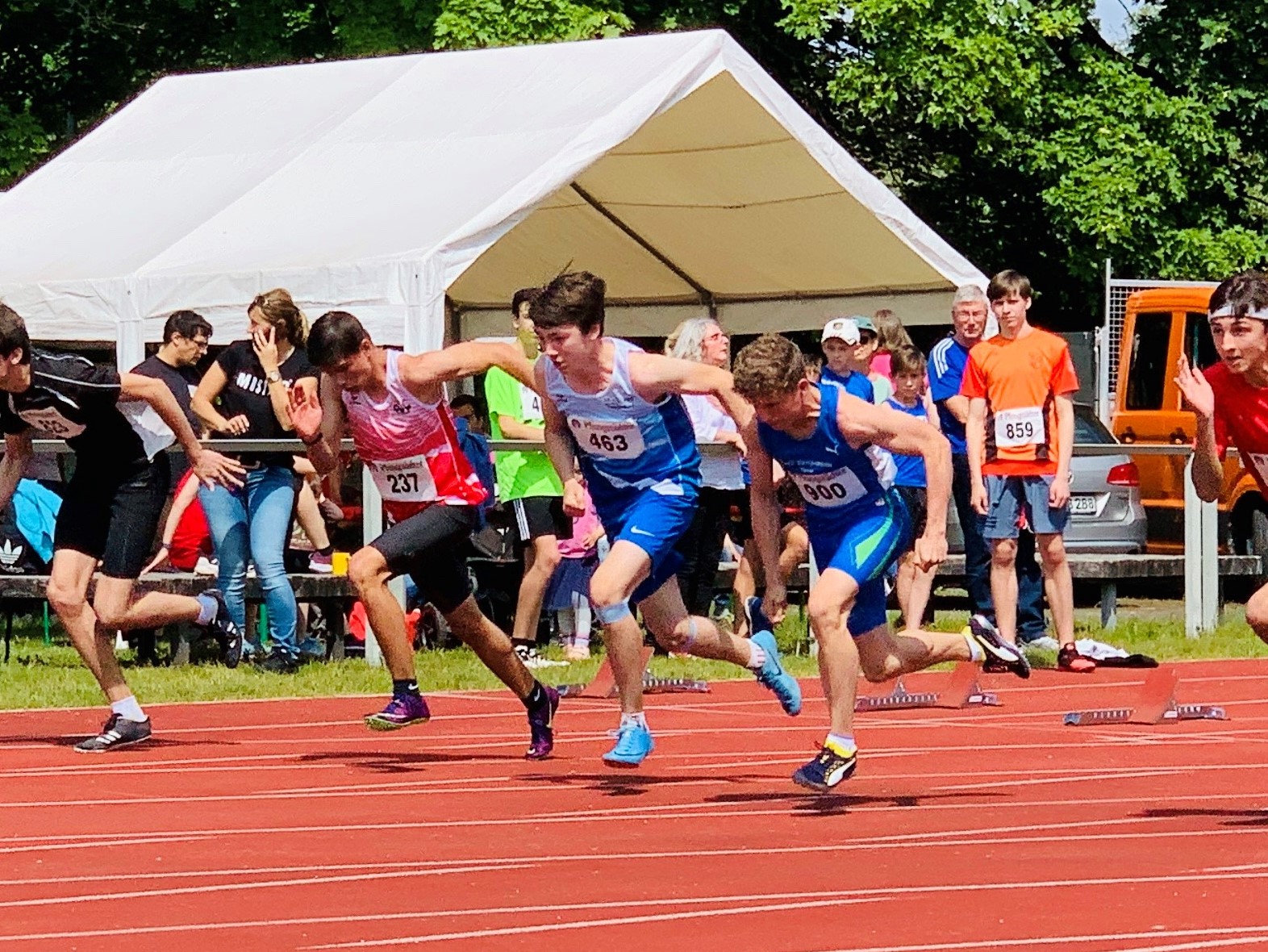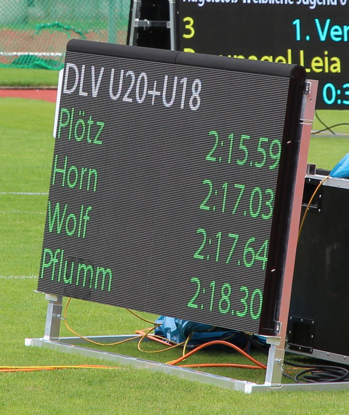 Über 800 Meter bei der männlichen Jugend U 18 lief Sebastian Tscheulin in 2:14,93 Minuten auf Rang sieben. Nick Schrettlinger kam hier über 200 Meter in 25,29 Sekunden bis auf 12 hundertstel Sekunden an seine Freiluft-Bestleistung heran.