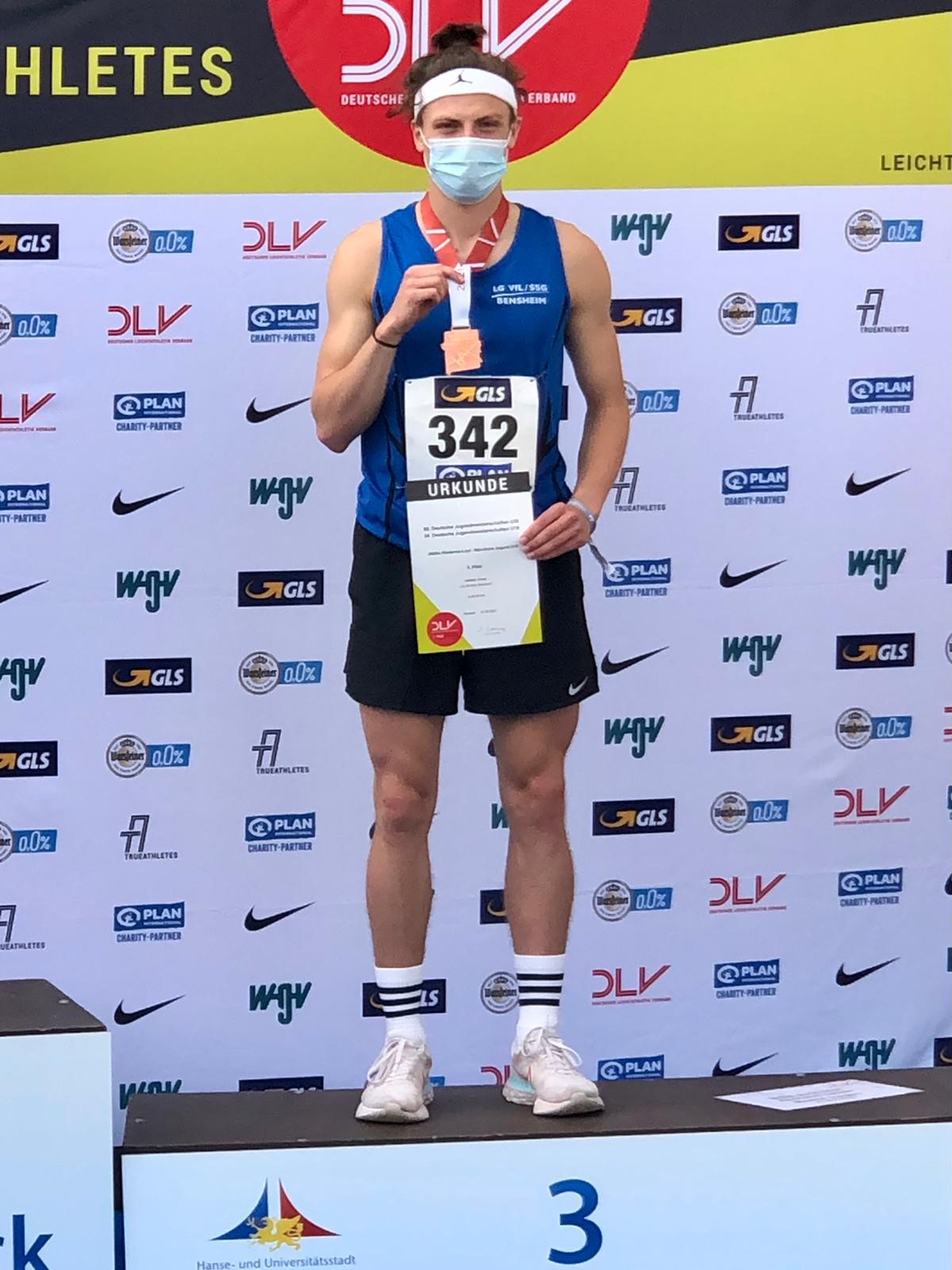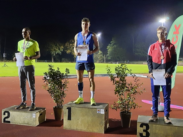 Hindernisspezialist Jonas Helfrich wagte einen Abstecher auf die 400 Meter Hürden-Strecke. In 59,83 Sekunden gewann er zwar Bronze, war mit der Zeit und dem Rennverlauf allerdings gar nicht zufrieden.