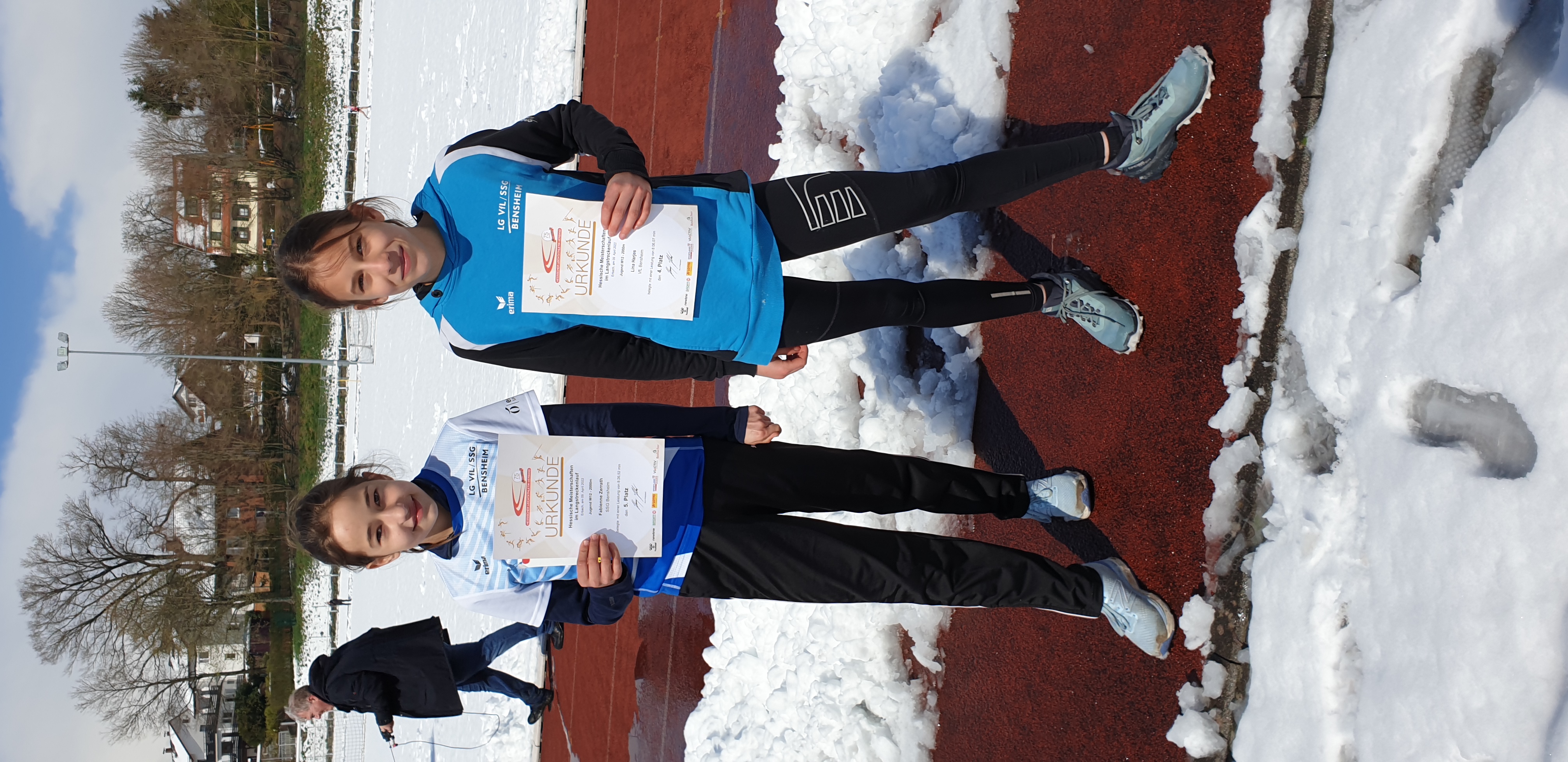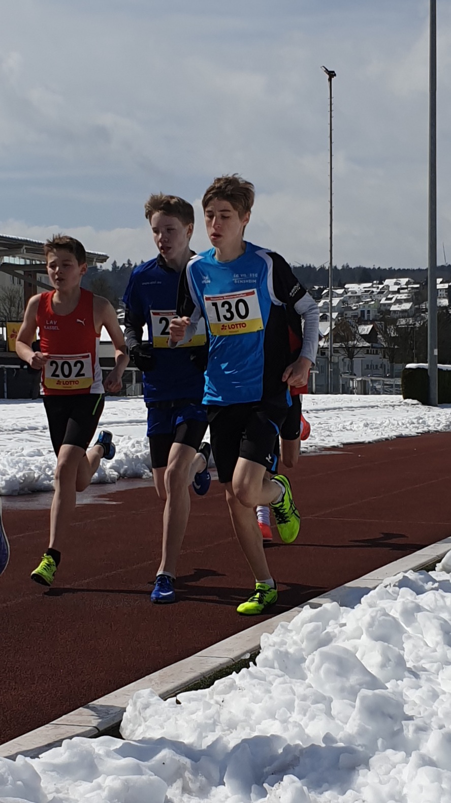 Am vergangenen Wochenende fanden die Hessischen Meisterschaften der Langstrecken in Erbach im Odenwald statt. Mit einem kleinen Team war auch die LG Bensheim vertreten, das sich der Herausforderung der Langstrecke sowie des Wetters stellte. In der Nacht gab es Neuschnee, so dass sich Trainerinnen und Trainer sowie Eltern zunächst beim Schneeschaufeln warm machen konnten.
