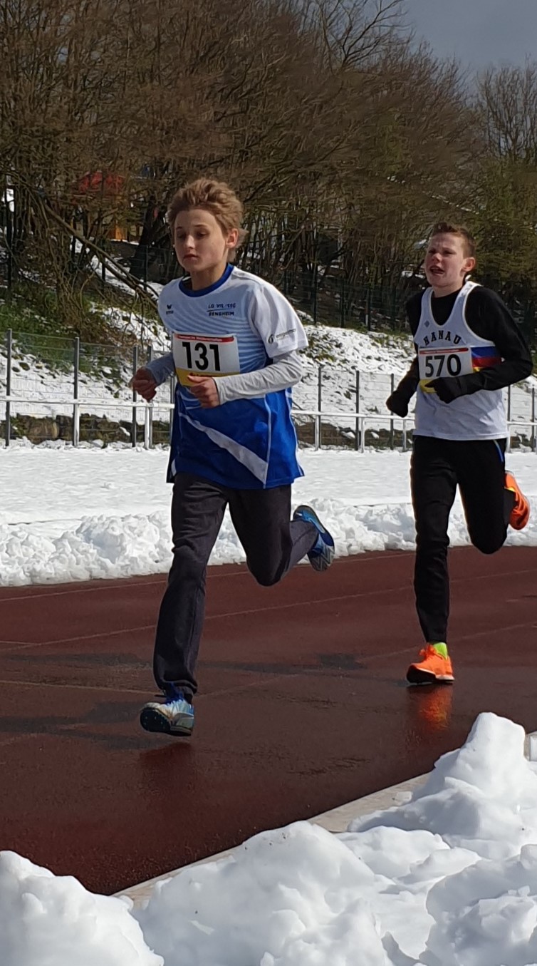 Gleich in seinem ersten Lauf über 2000 m zeigte Nils Glock einen souveränen Auftritt. Er behauptet sich gegen die Konkurrenz aus ganz Hessen in der Altersklasse M12 und wurde in 7:24,99 min Hessenmeister vor Nick Lampropoulos vom TV Petersberg mit 7:28,69 min.