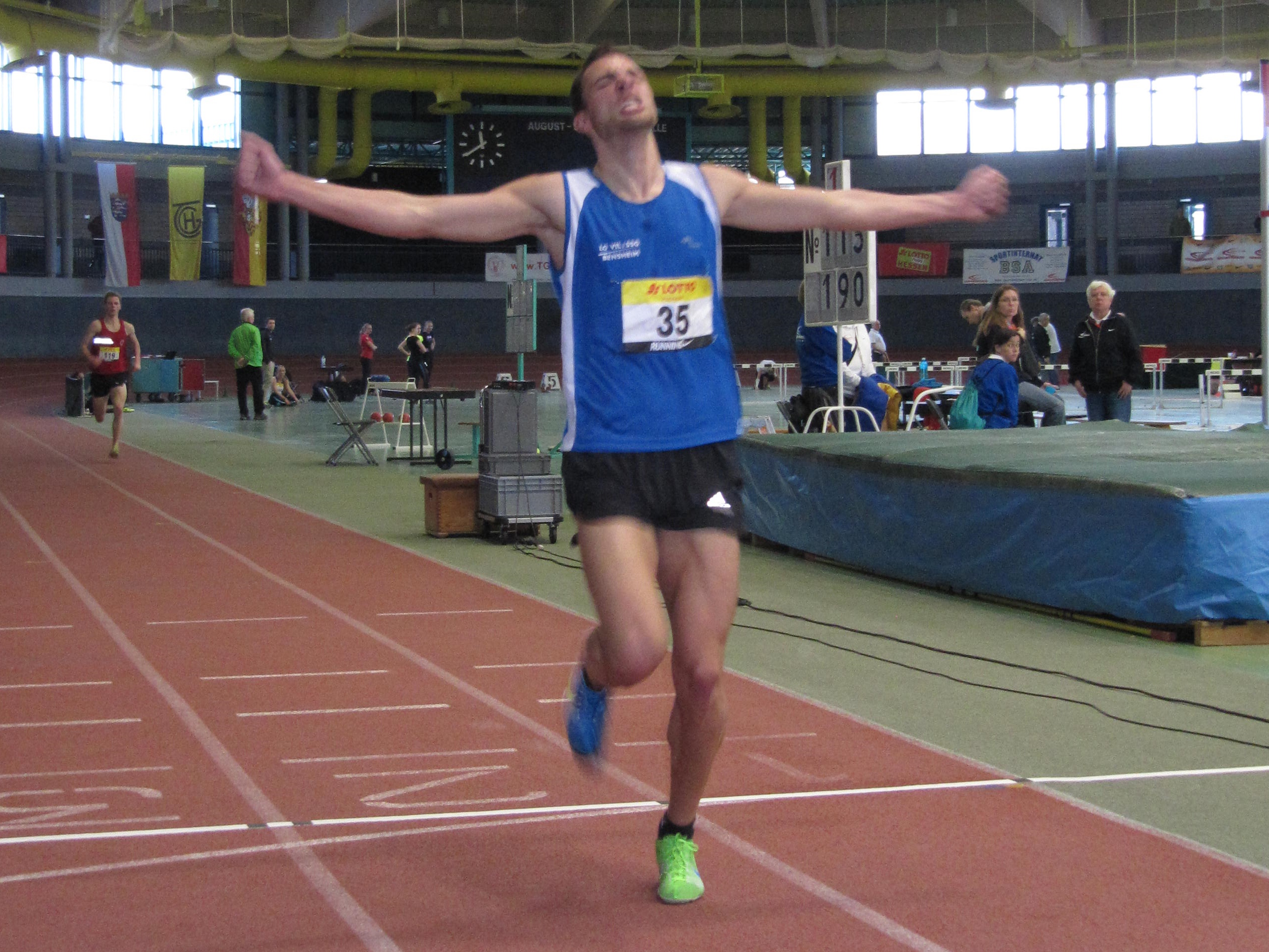 Durch die Hektik der Wettkampffolge fehlte ihm im Hochsprung die nötigeKonzentration, weshalb er bei 1,60 Meter patzte und sich mit 1,55 Meter auf Rang sieben platzierte. Einen hervorragenden vierten Platz erkämpfte in der gleichen Altersklasse Kolja Breuer über 1000 Meter in 2:52,76 Minuten (pB) sowie Stephan Rapp bei den Männern über 800 Meter mit 1:55,86 Minuten. Sein Bruder Mark Rapp verzichtete auf einen Start in Wetzlar zu Gunsten eines Starts beim internationalen Meeting in Dessau, musste hier aber dann verletzungsbedingt absagen.